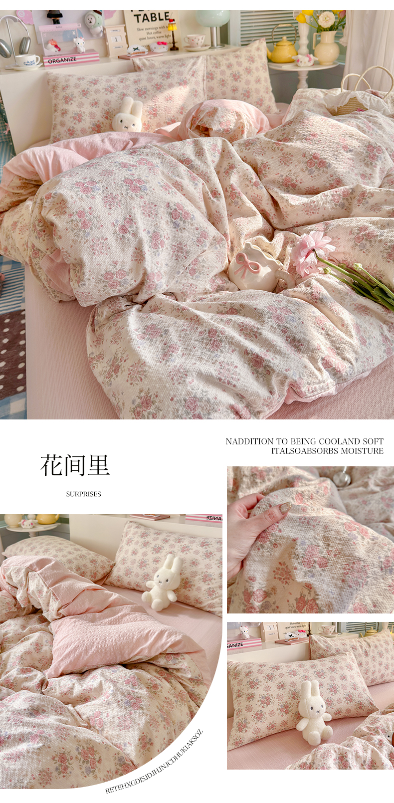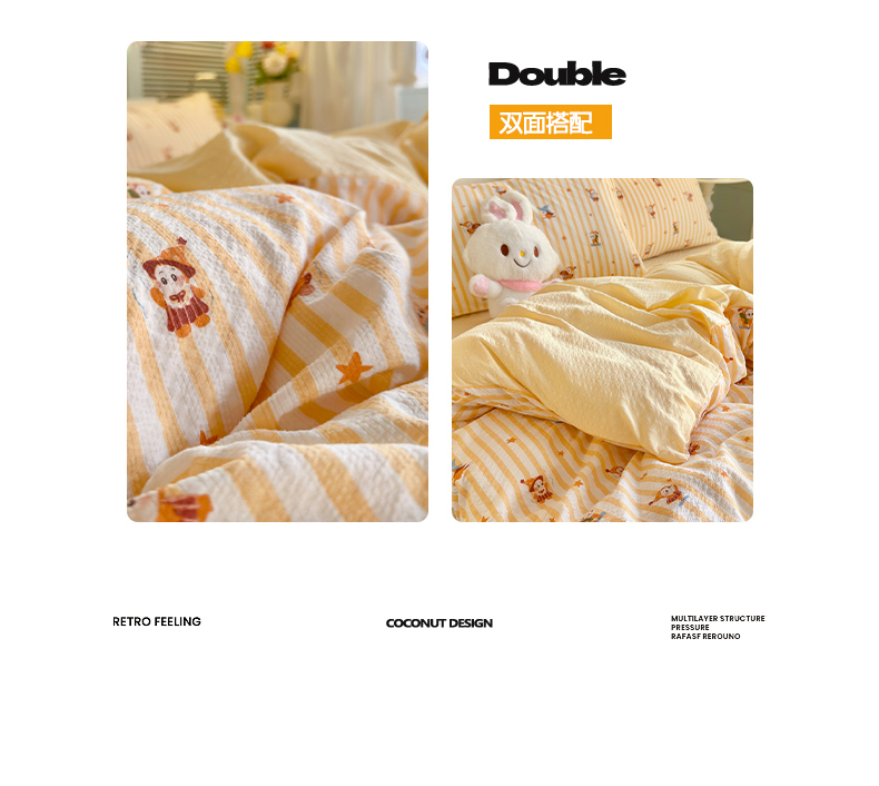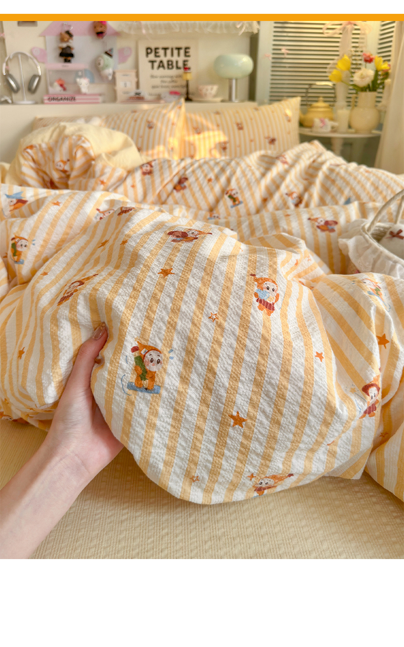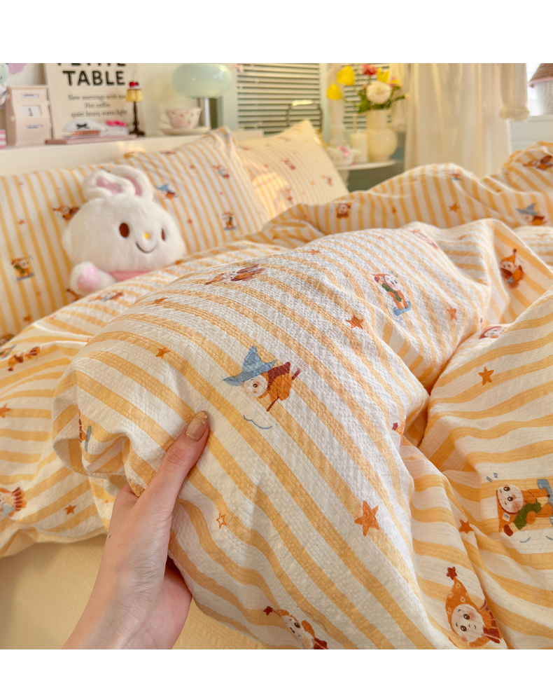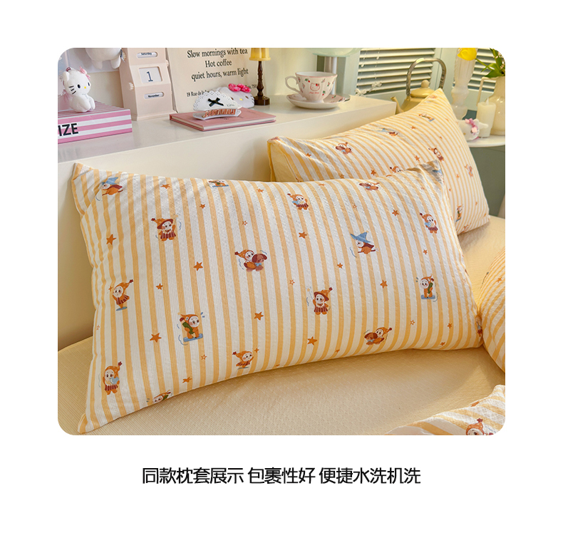 当前位置: 91家纺网 > 商品网购 > 床品套件 > 四件套 > 双层纱四件套 > 铺尚美家纺 2026新款小清新110g高品质直播热卖款A类泡芙棉双层纱四件套 星星人