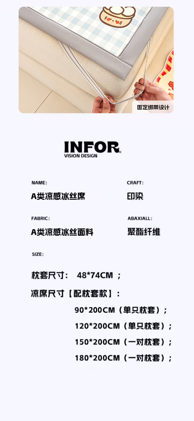 商品名称:川悦生活 【提供买家秀】2026新款凉豆豆冰丝大阪卡通凉席 萌萌小奶虎
