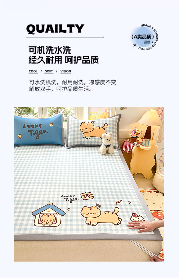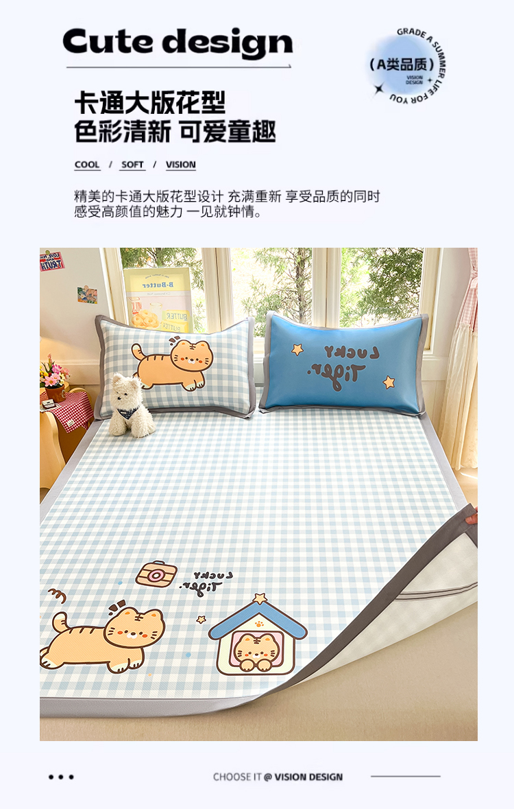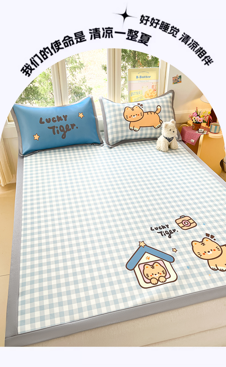 川悦生活 【提供买家秀】2026新款凉豆豆冰丝大阪卡通凉席 萌萌小奶虎