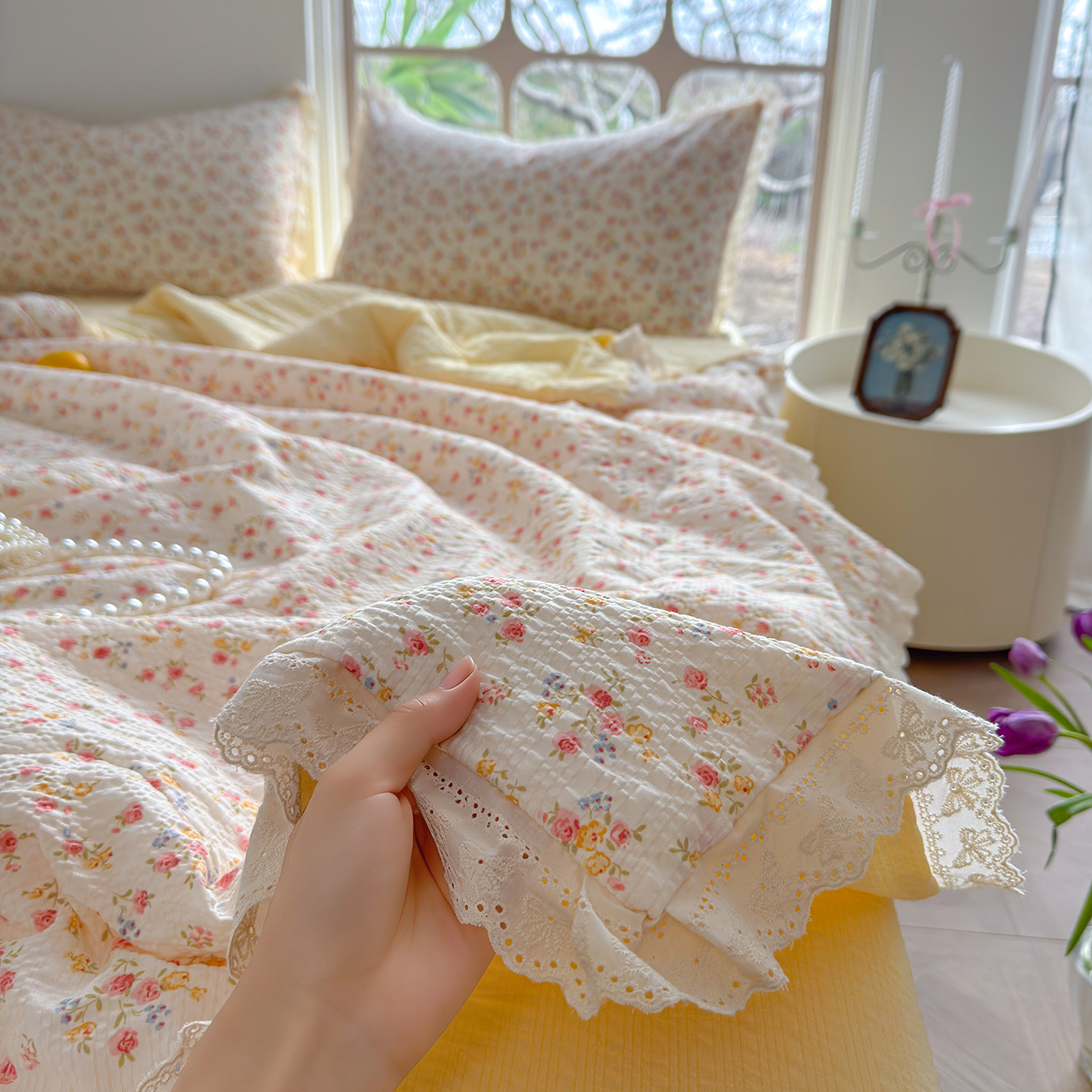 (总)竹合家纺 2025新款春日碎花法式镂空花边款式提花皱皱四件套,法式-晨曦,法式-粉格花园,法式-乖乖兔,法式-海岛清茶,法式-结美绿,法式-咖格蘑菇,法式-甜心小小兔,法式-小南瓜灰,法式-小南瓜卡其,法式-花束蛋糕