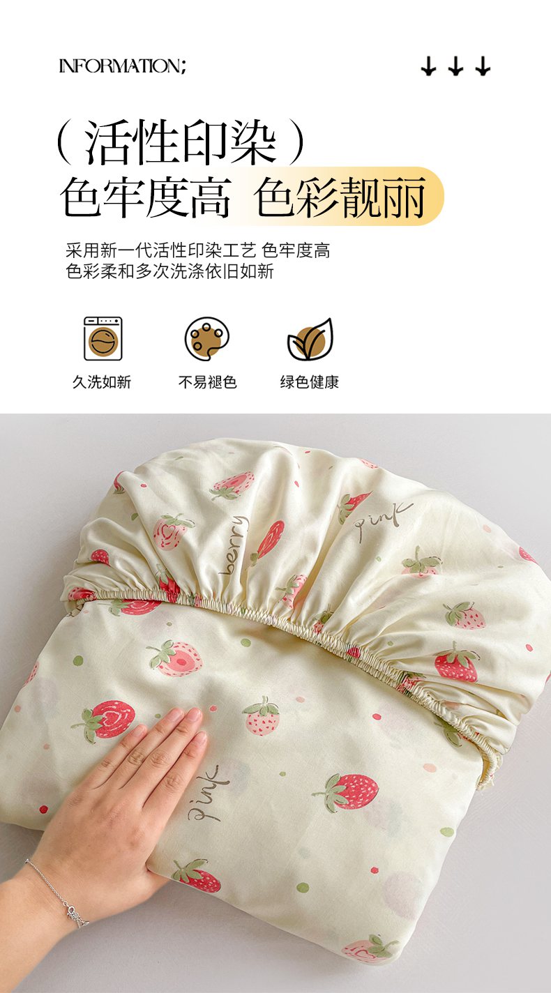 • 91家纺网 家纺一手货源 找家纺 纽缦家纺 2026新款A类水洗棉学生床笠系列 摘樱桃的小熊