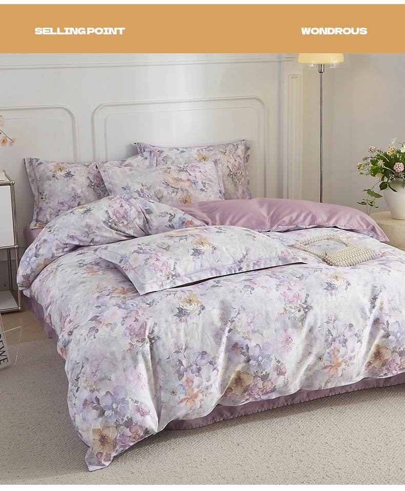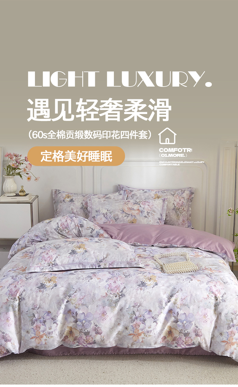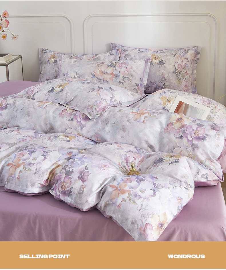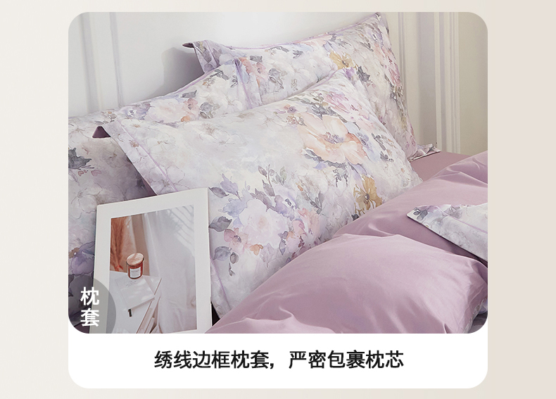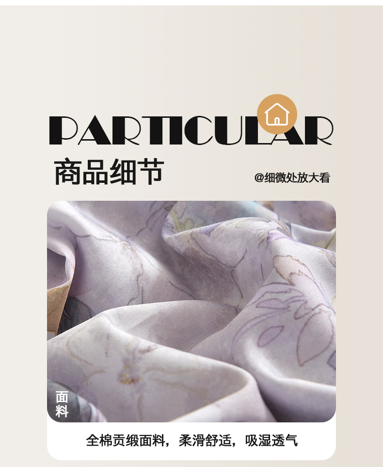 当前位置: 91家纺网 > 商品网购 > 床品套件 > 四件套 > 全棉普通四件套 > 锦彩家居 2026新款全棉纯棉印花60支贡缎新疆长绒棉四件套-山月记系列 紫芙