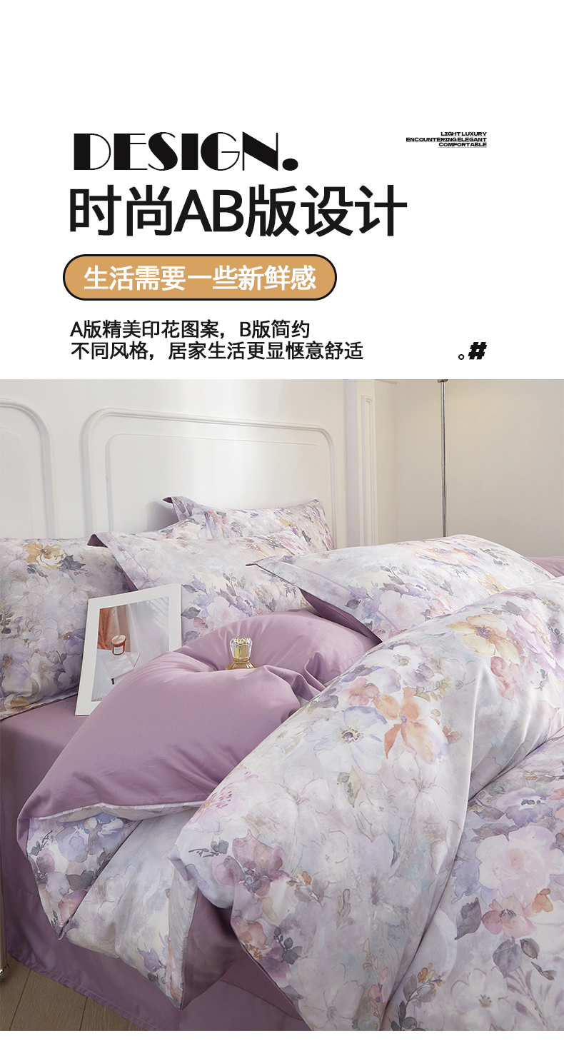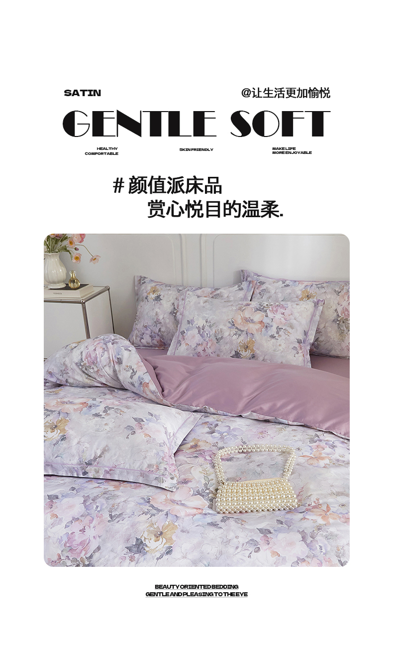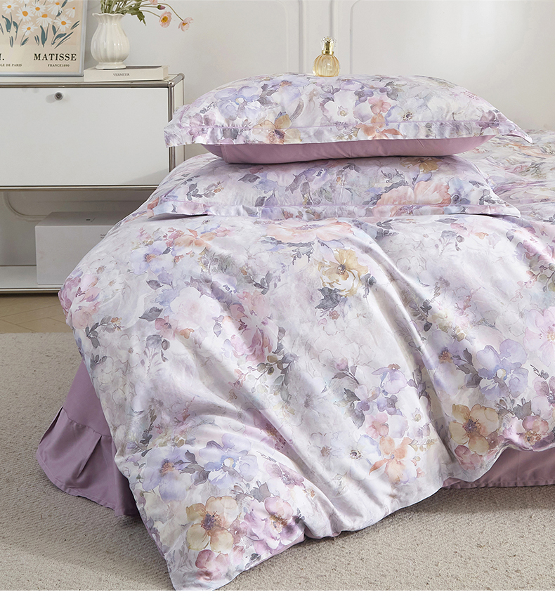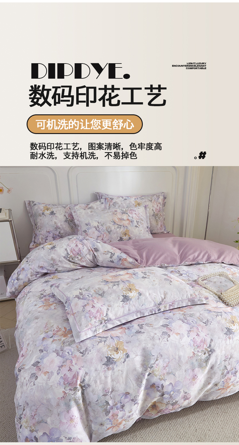 当前位置: 91家纺网 > 商品网购 > 床品套件 > 四件套 > 全棉普通四件套 > 锦彩家居 2026新款全棉纯棉印花60支贡缎新疆长绒棉四件套-山月记系列 紫芙