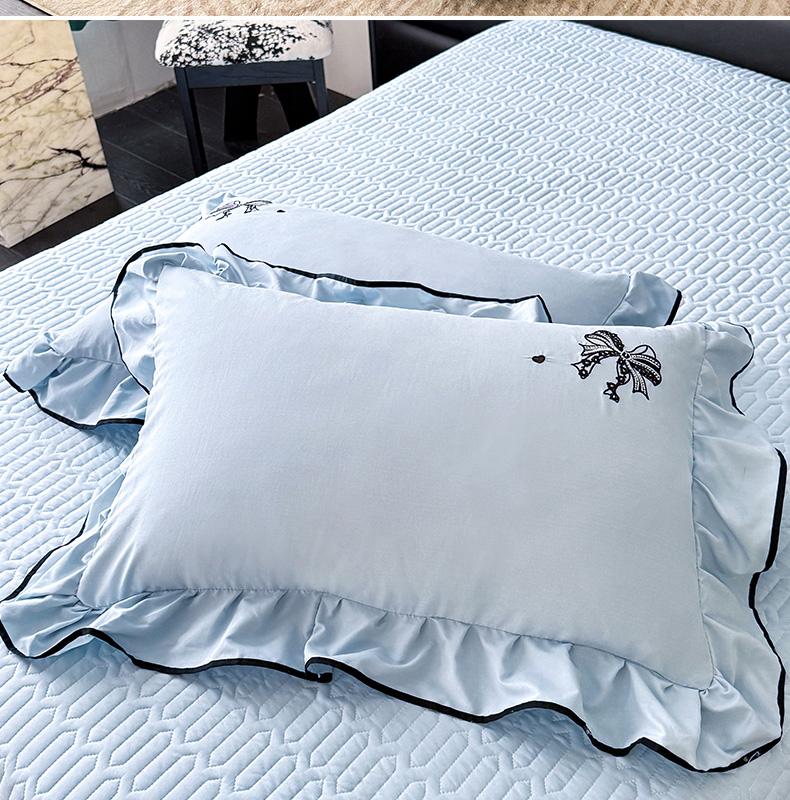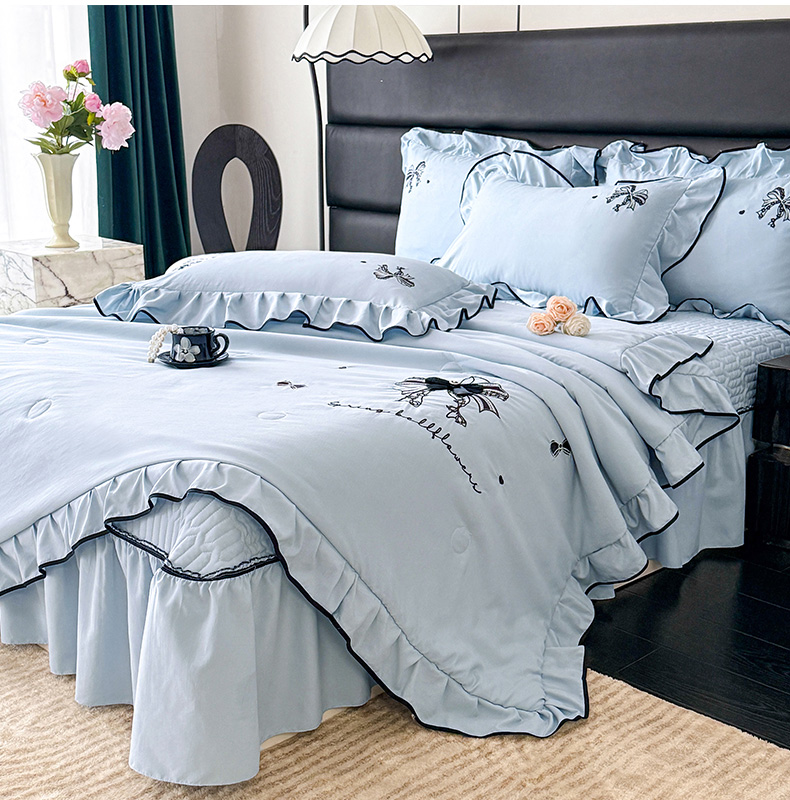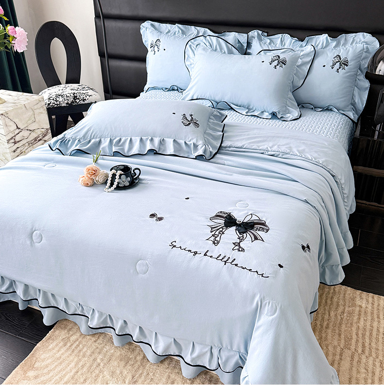 优贝家纺 2026春夏新款多功能夏被床盖四件套刺绣 赫本-兰