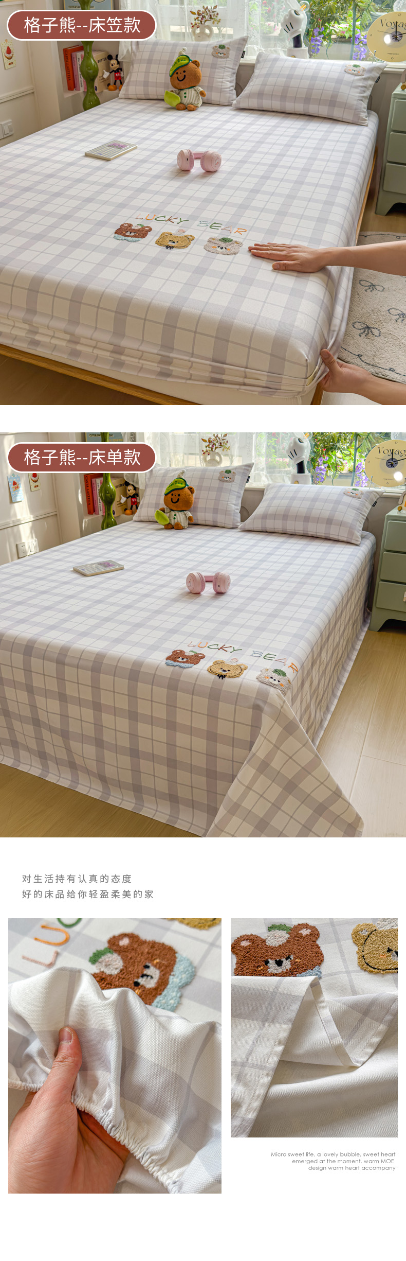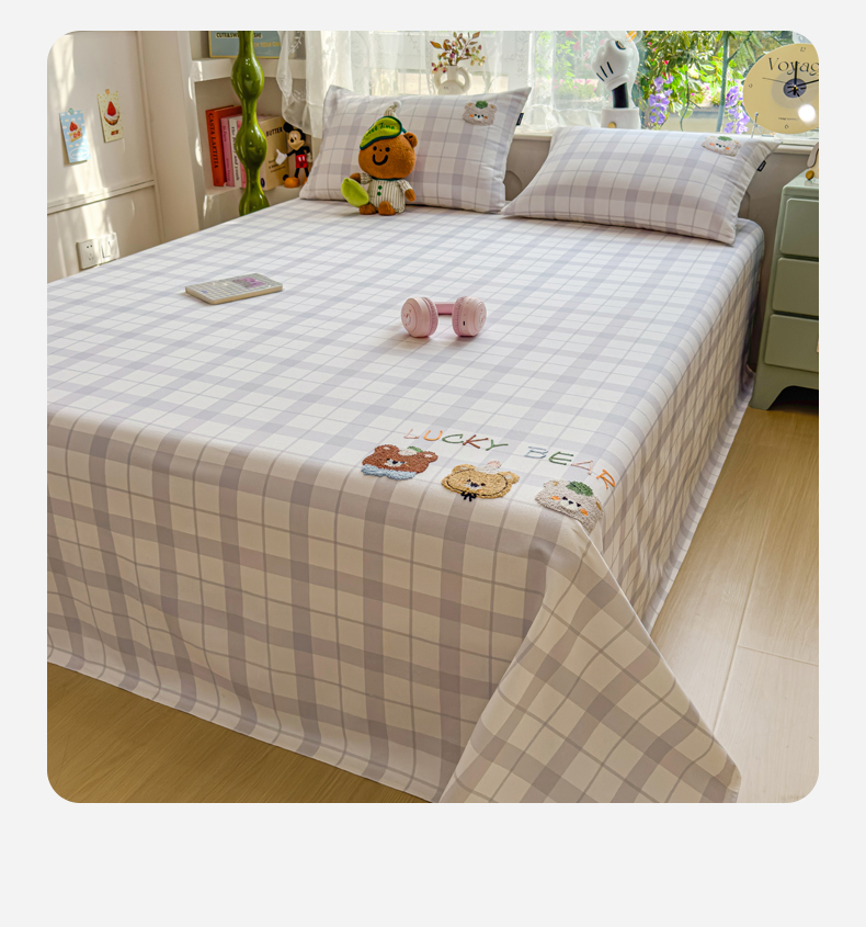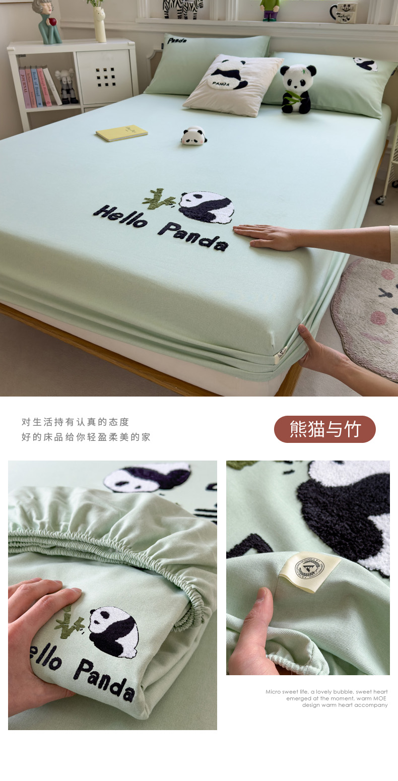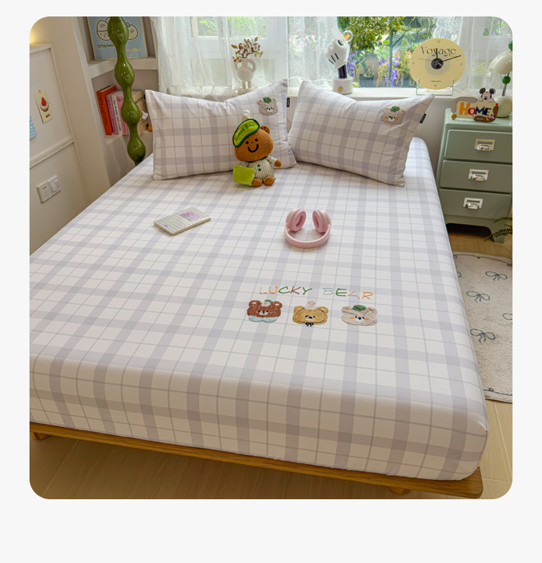(总)席世家 2025新款绣花凉感床笠(控价198 218),格子熊猫,格子熊猫