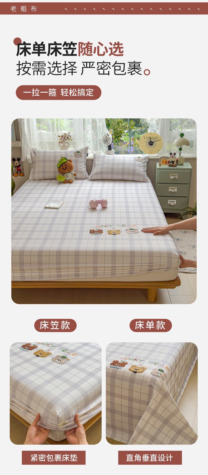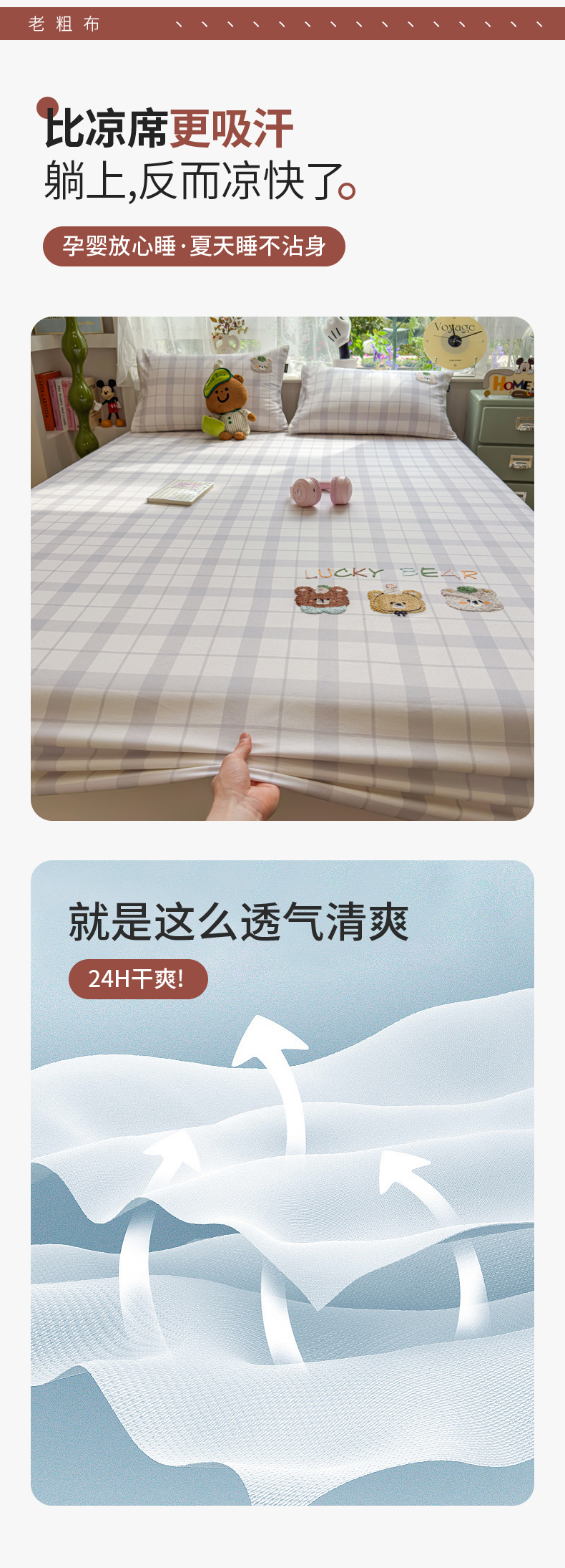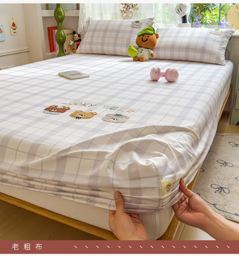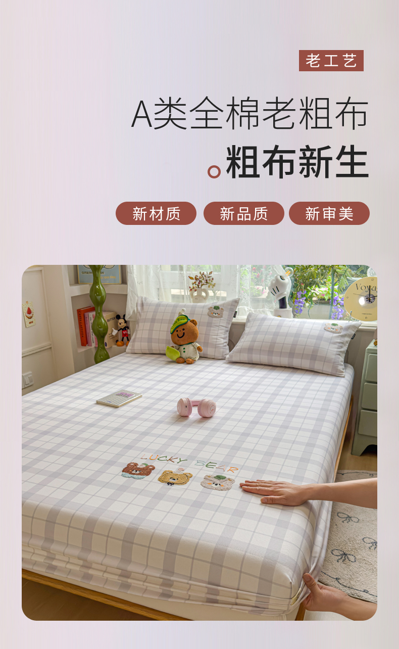 (总)席世家 2025春夏新款全棉纯棉老粗布印花床笠凉席席子,宝贝兔,嘟嘟熊,卡皮拉,苹果树,幸运帽,熊猫与竹
