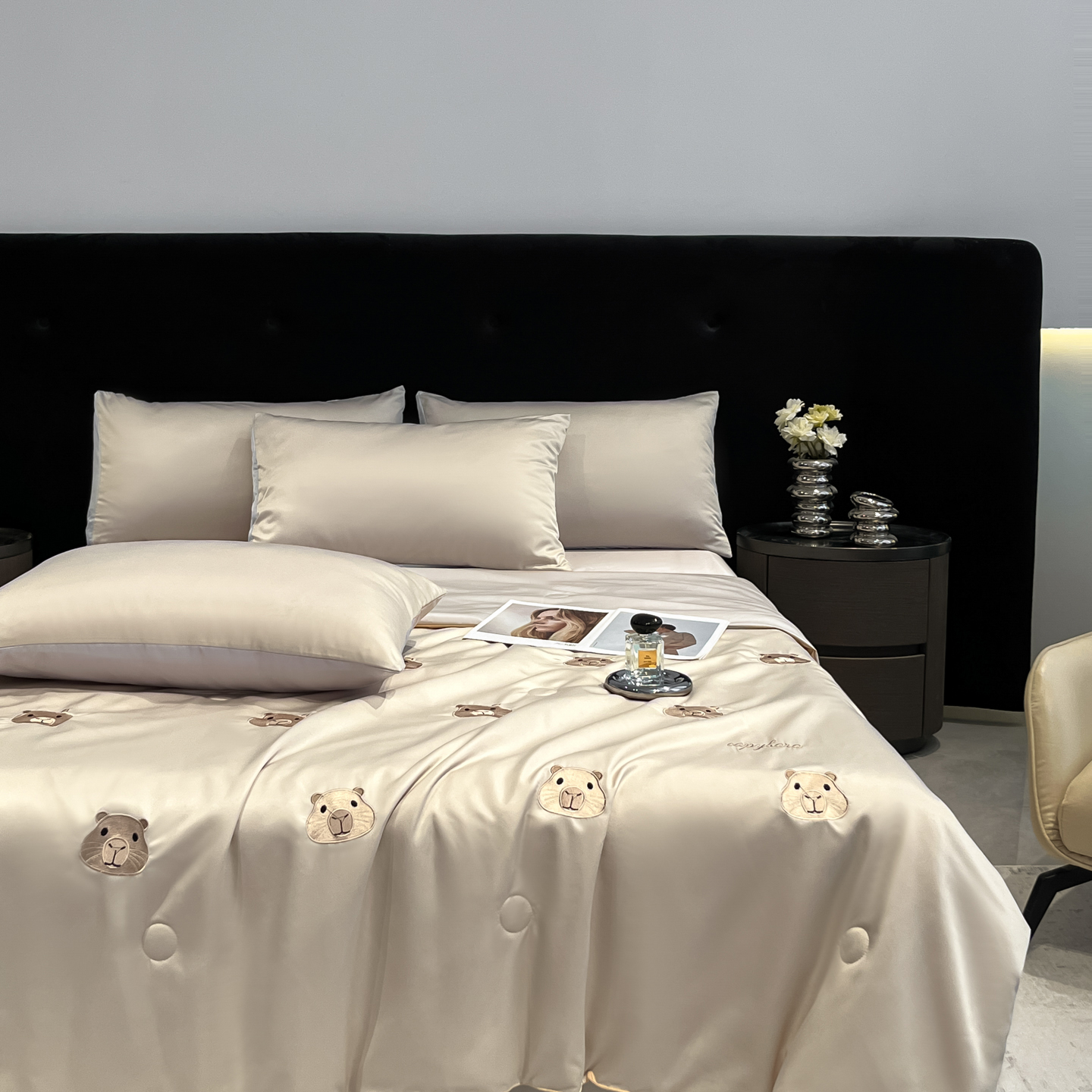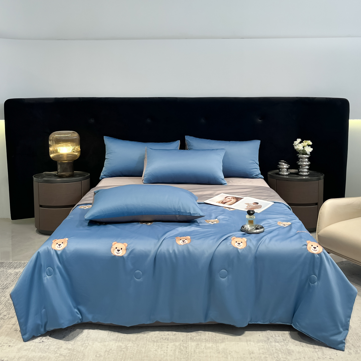 当前位置: 91家纺网 > 商品网购 > 床品套件 > 四件套 > 夏被四件套 > 红嘴企鹅 2026新款水洗冰丝刺绣夏被四件套 夏被-小熊宾利蓝
