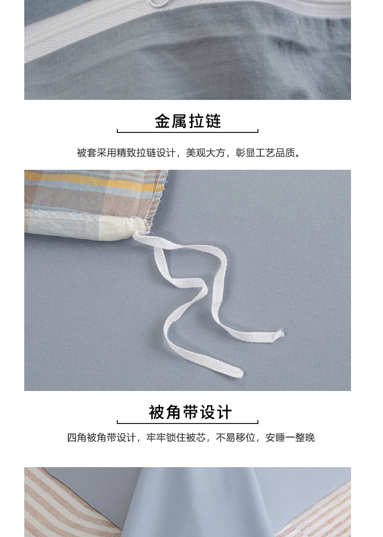 当前位置: 91家纺网 > 商品网购 > 床上用品 > 被套 > 居美良品 2026新款100%全棉色织水洗棉被套A类纯棉被罩单品被套被套单件 兰青-灰