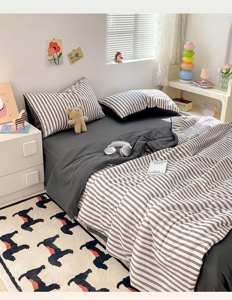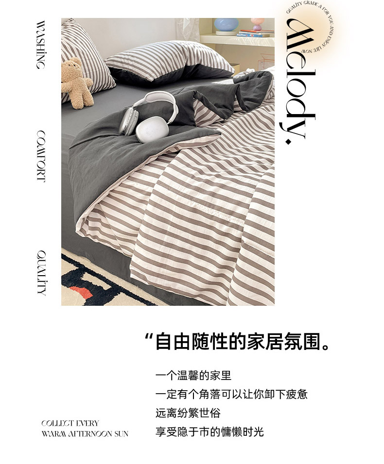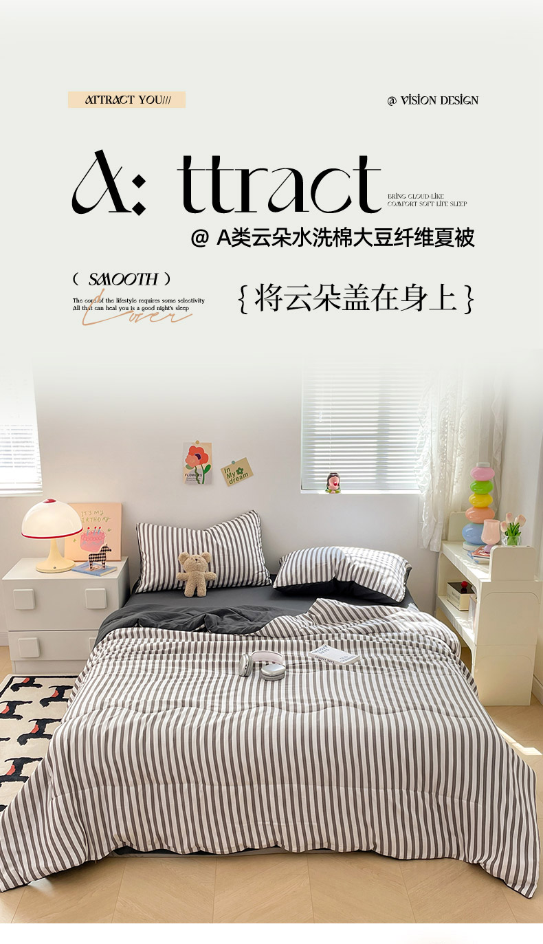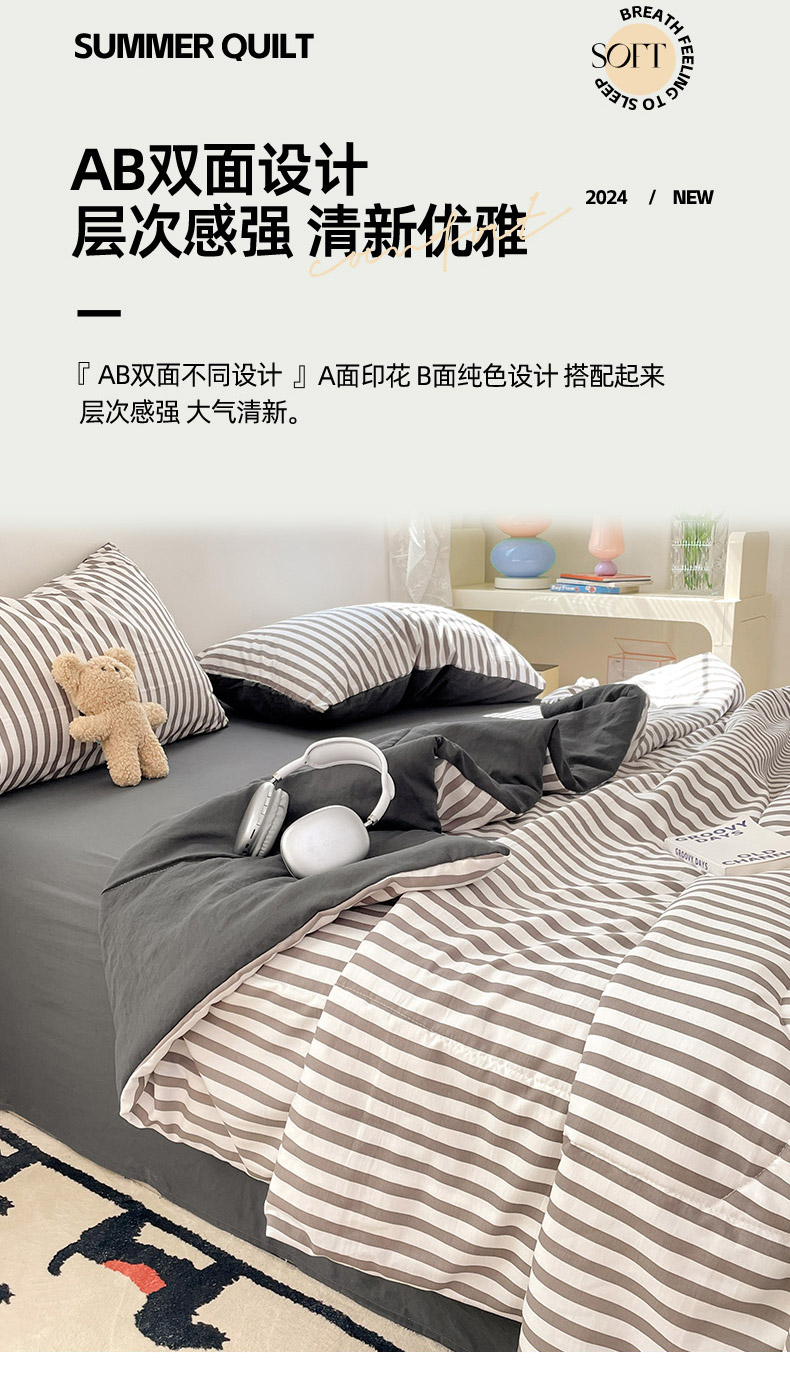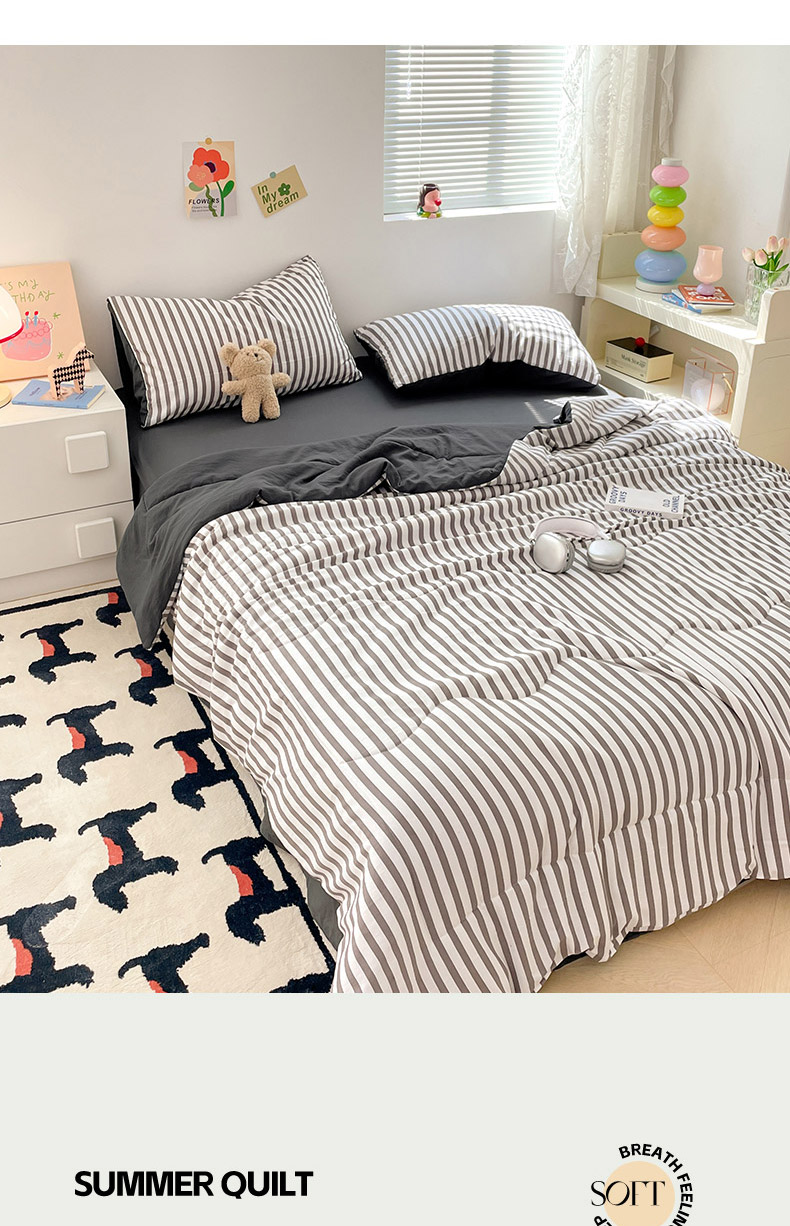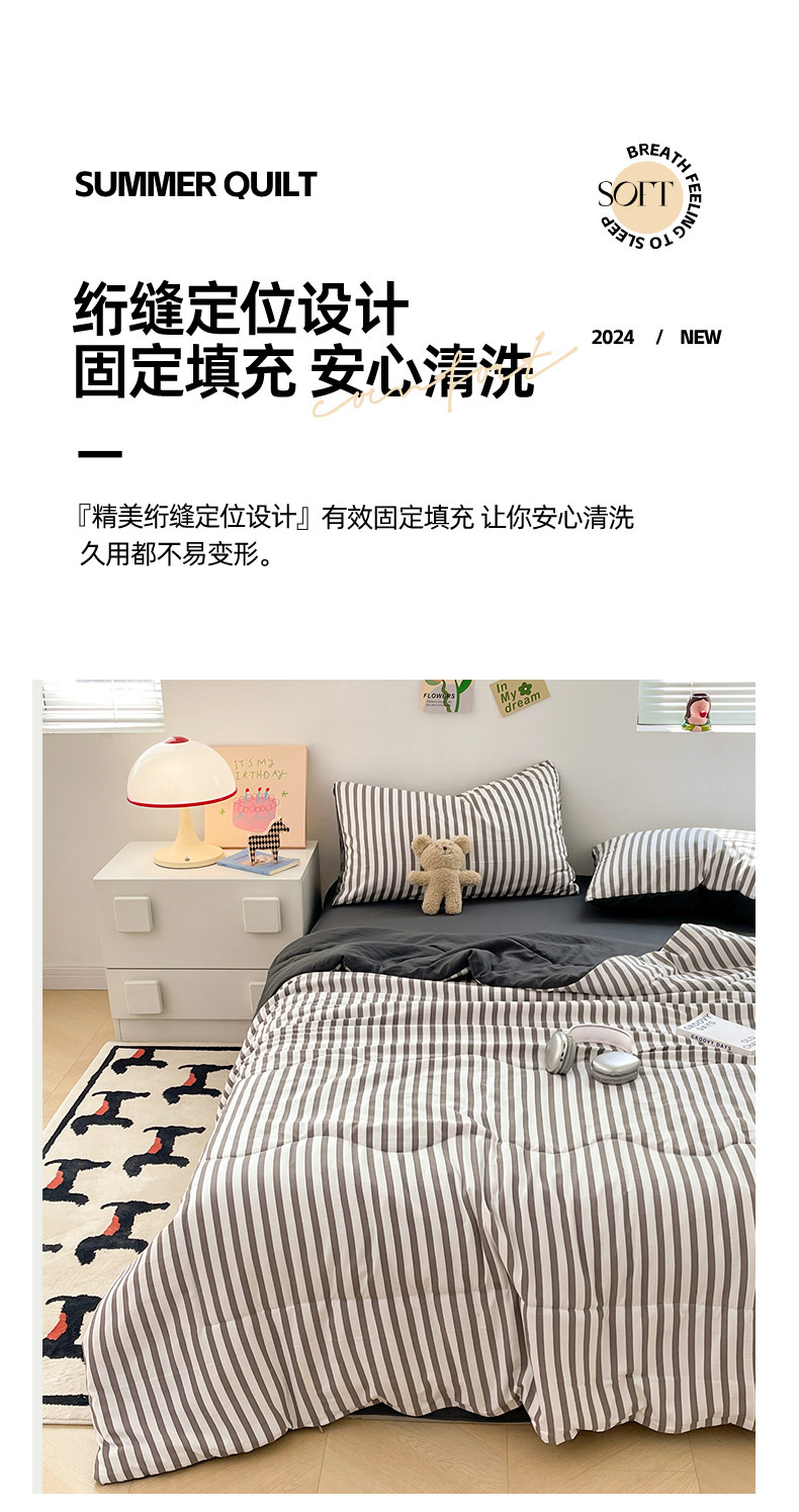 • 91家纺网 家纺一手货源 找家纺 卡斯诺家纺馆 2026新款水洗云朵棉夏被夏凉被空调被 甜辣风-深灰条