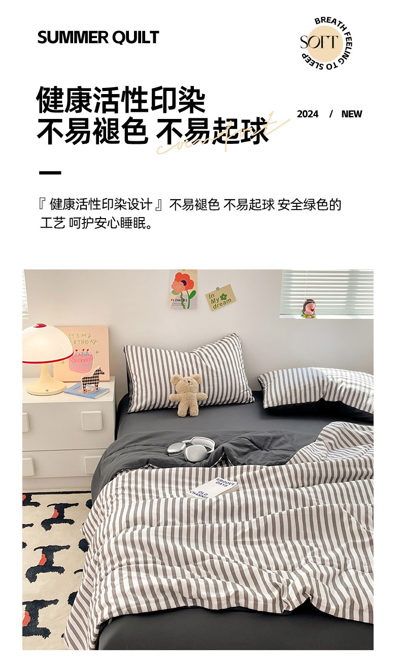 (总)卡斯诺家纺馆 2026新款水洗棉棉花夏被四件套,茶绿奶黄,宝兰深灰,魅紫浅粉,米白藏青,奶黄深咖,浅灰深灰,天蓝奶黄,雾蓝天蓝