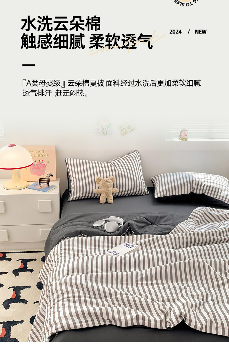 当前位置: 91家纺网 > 商品网购 > 被子 > 夏被 > 卡斯诺家纺馆 2026新款水洗云朵棉夏被夏凉被空调被 甜辣风-深灰条