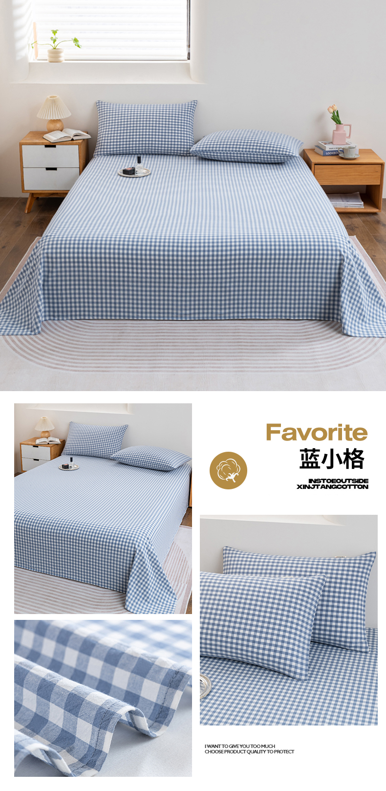 • 91家纺网 家纺一手货源 找家纺 居美良品 2026新款100%全棉色织水洗棉A类纯棉床单单品床单床单单件 静雅-蓝