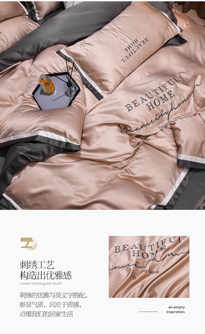 当前位置: 91家纺网 > 商品网购 > 床品套件 > 四件套 > 化纤普通四件套 > 首尔家纺 2026春夏新款水洗真丝绣花四件套寐系列 银灰