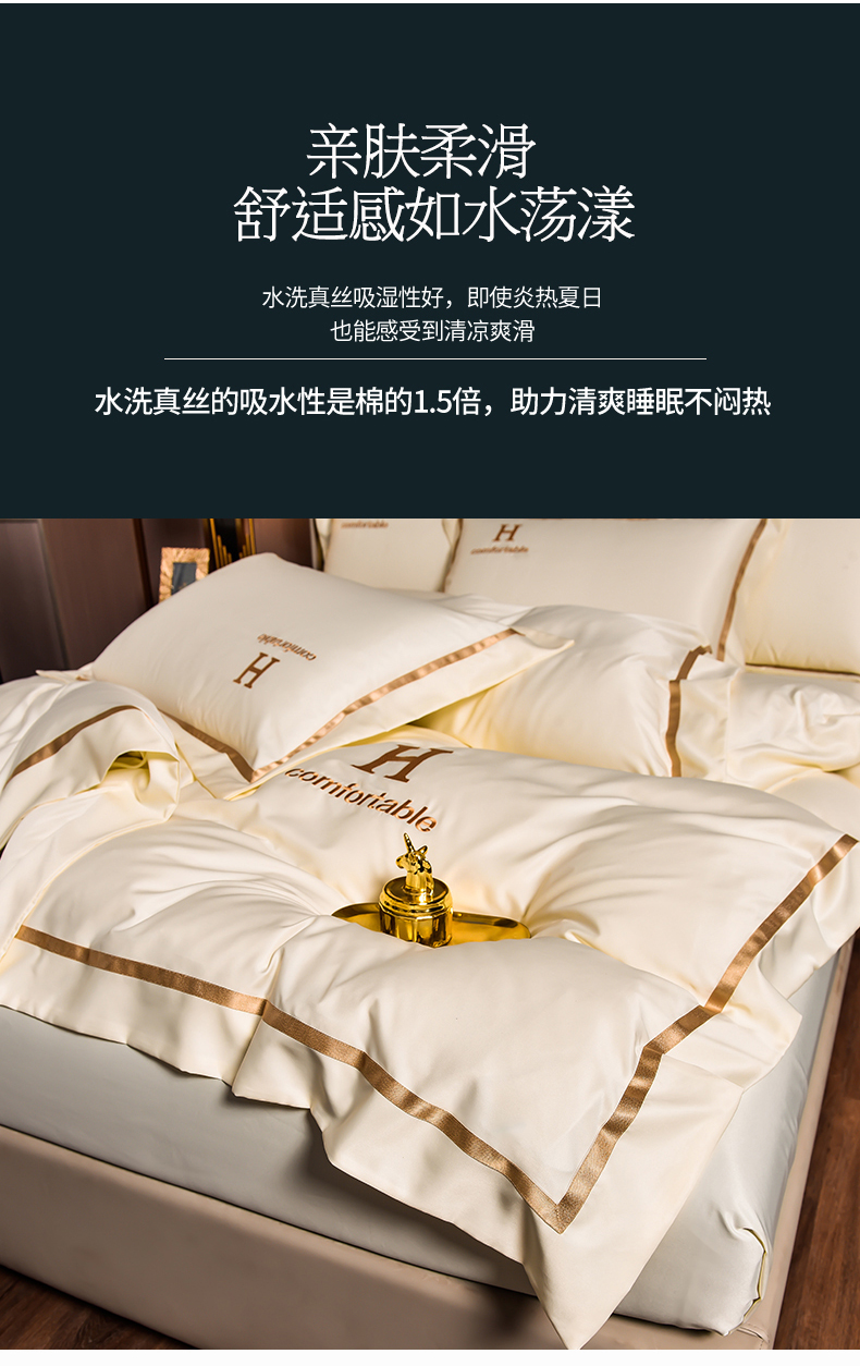 当前位置: 91家纺网 > 商品网购 > 床品套件 > 四件套 > 化纤普通四件套 > 首尔家纺 2026新款水洗真丝绣花四件套H系列 H-浅卡其