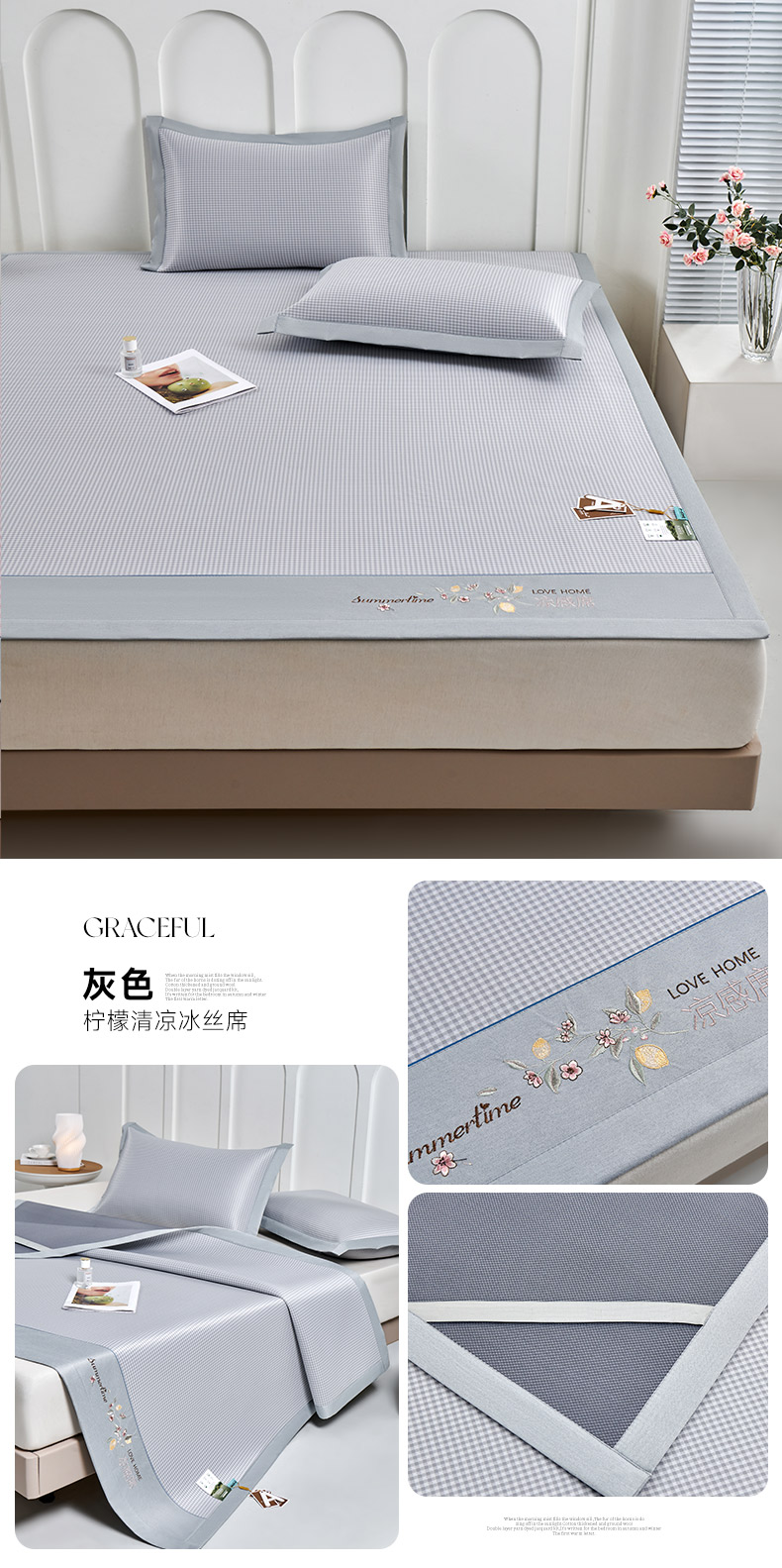 (总)小牛席业 2026新款柠檬清凉冰丝席凉席席子,粉色,灰色,蓝色,香槟