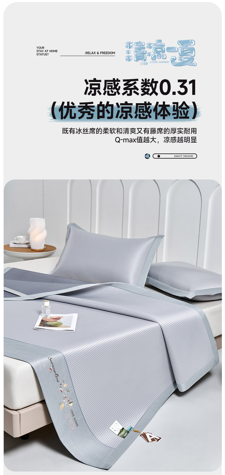 (总)2023新款超精密冰丝席-小斜纹系列-床笠款藤席凉席竹席,粉色,蓝色,绿色,银灰