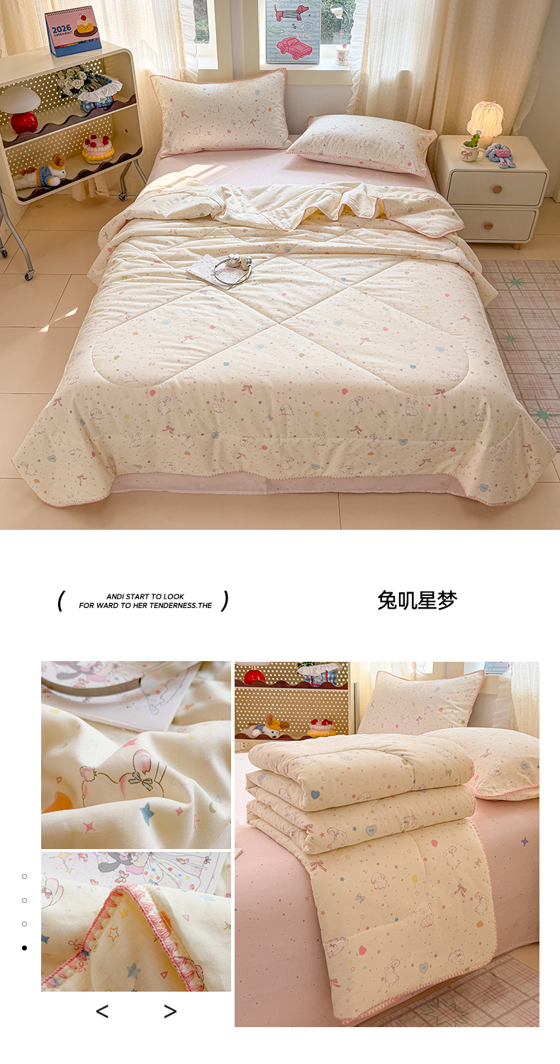 • 91家纺网 家纺一手货源 找家纺 (总)沐辰 2026新款A类贝壳边全棉纯棉棉花夏被夏凉被空调被,安睡小熊,黑猫奶咖,蜡笔萌趣,奶熊甜梦,兔叽星梦,星星猫,治愈小狗
