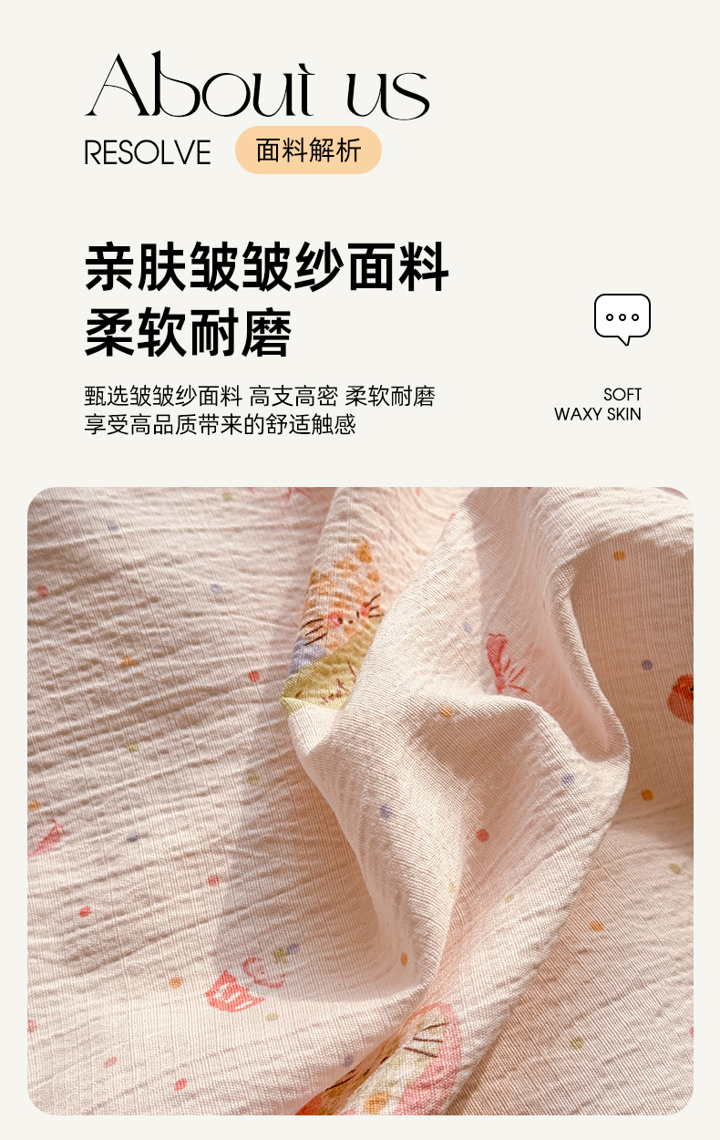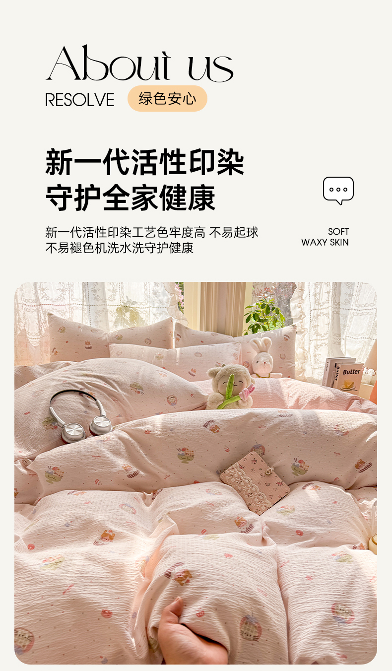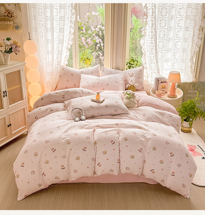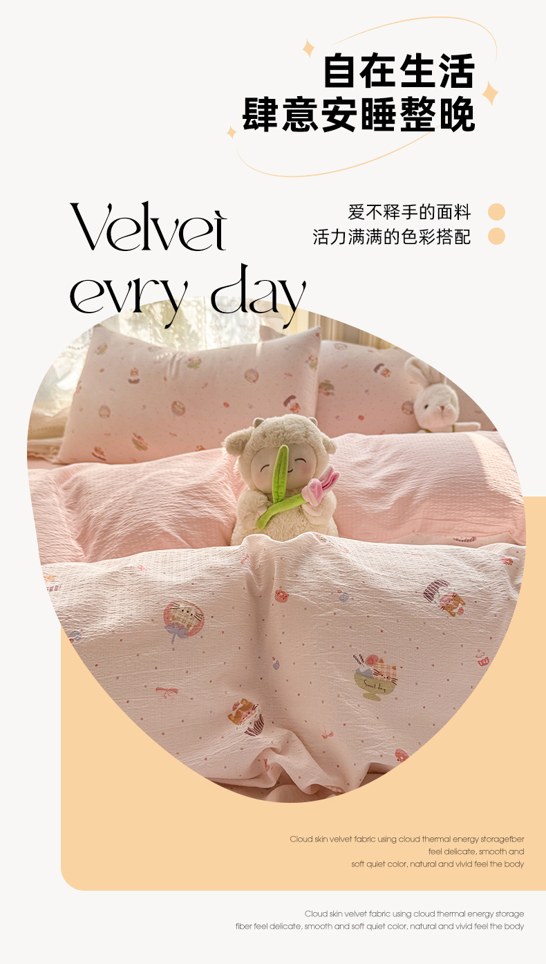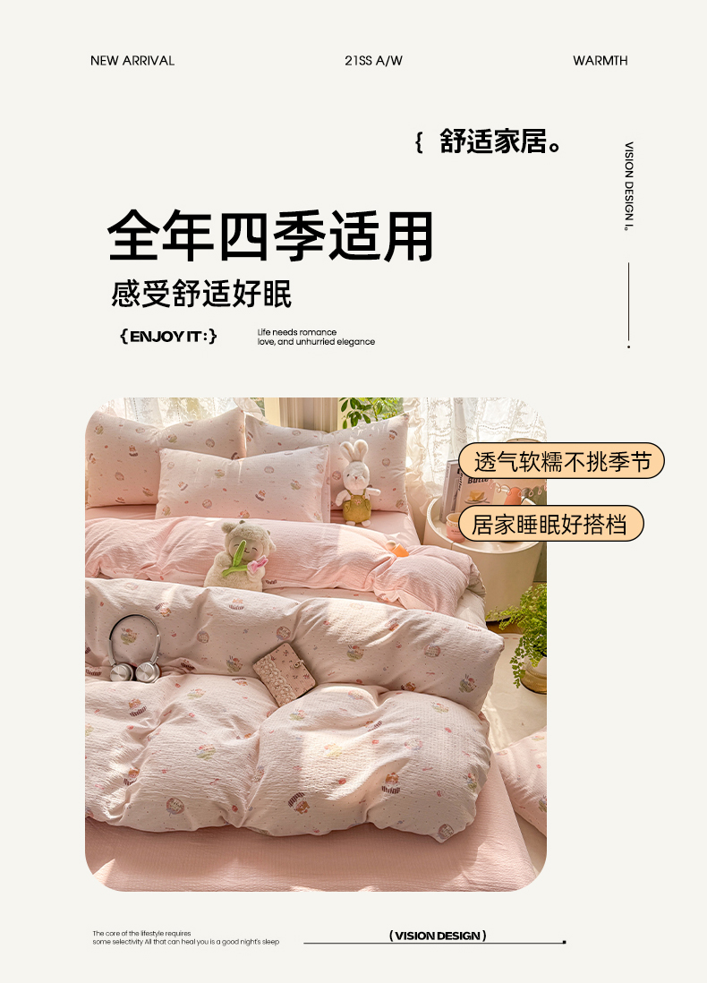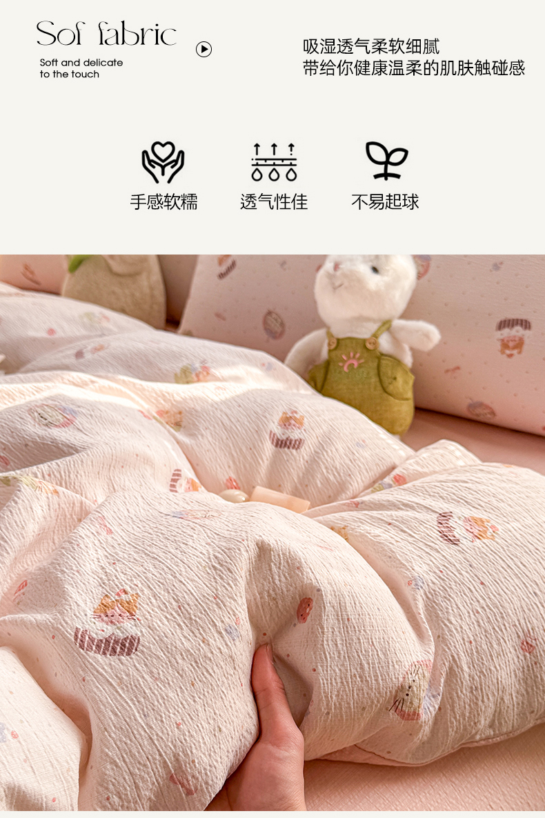 当前位置: 91家纺网 > 商品网购 > 床品套件 > 四件套 > 化纤普通四件套 > 丝芙妮家居 2026新款皱皱棉双层纱泡芙棉四件套 莓果冰淇淋