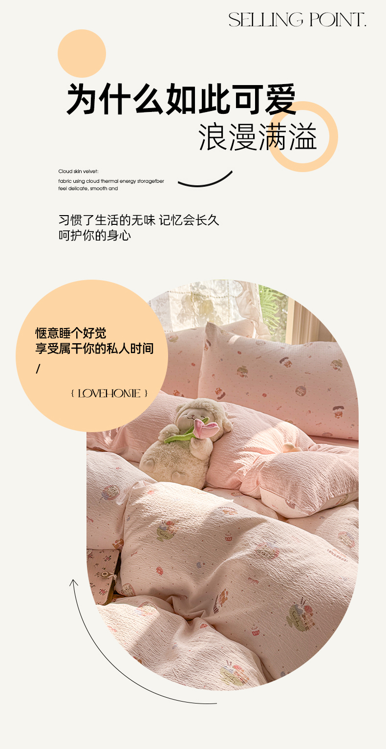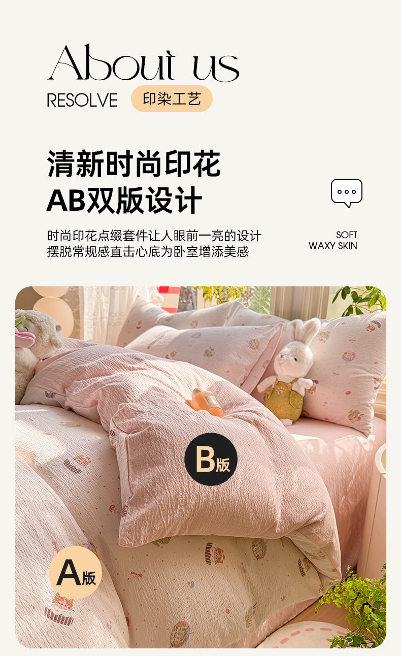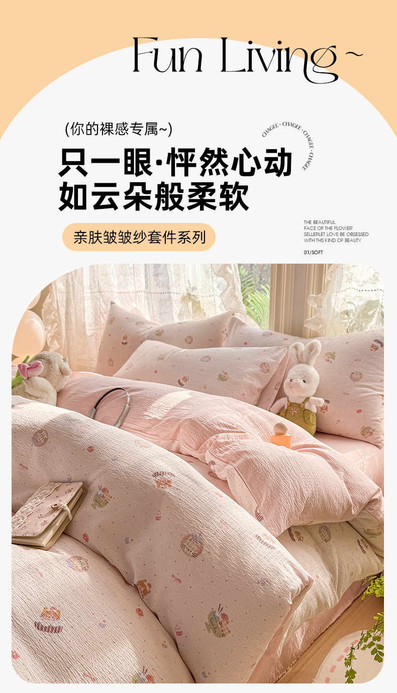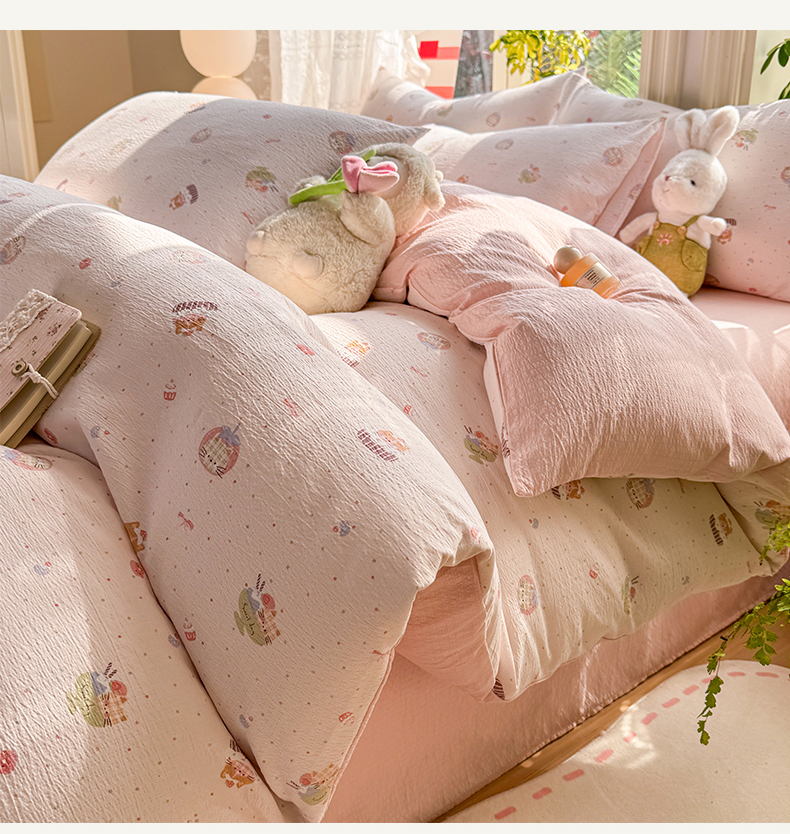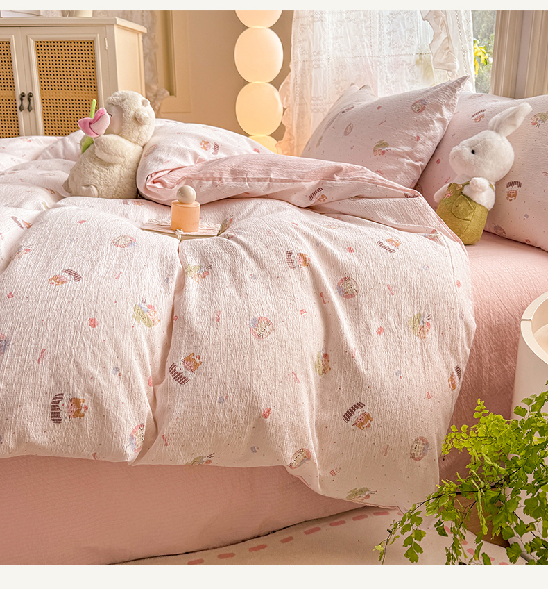 当前位置: 91家纺网 > 商品网购 > 床品套件 > 四件套 > 化纤普通四件套 > 丝芙妮家居 2026新款皱皱棉双层纱泡芙棉四件套 莓果冰淇淋