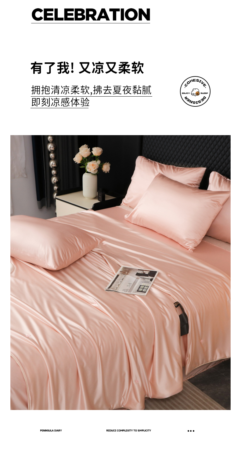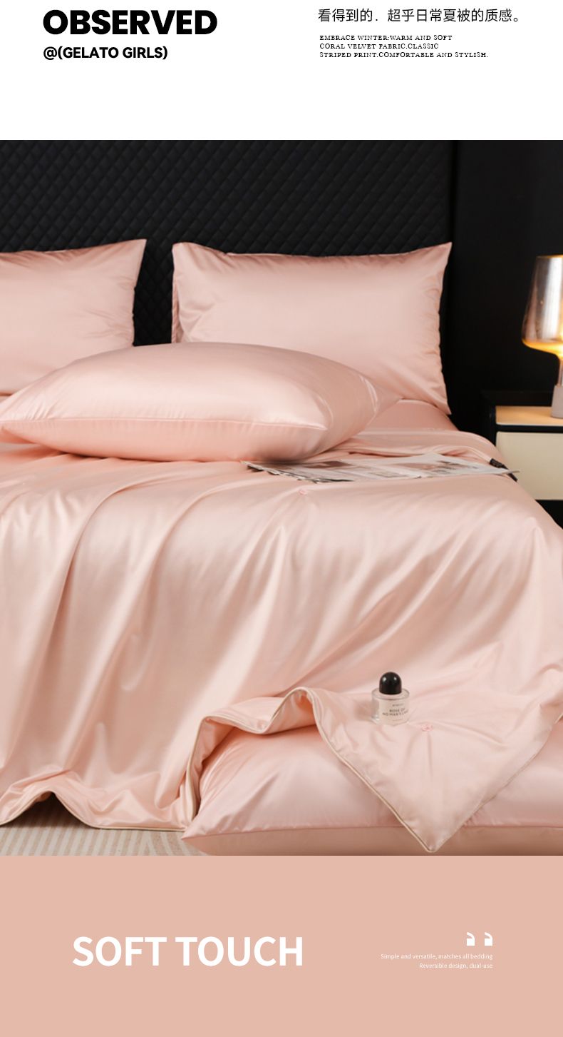 爱彼家纺 2026夏季新款流锻亲肤水光夏凉被高级感单夏被-可定制蚕丝夏被 莫奈浅粉