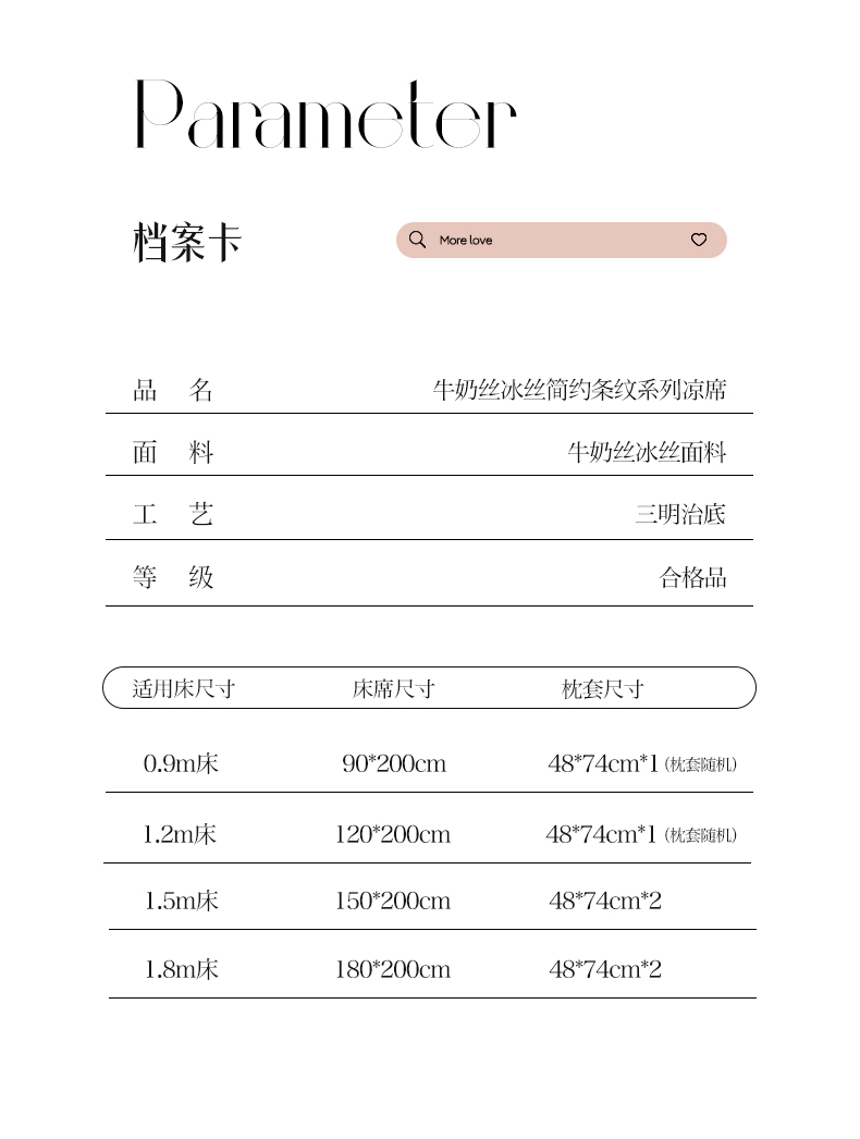 商品名称:雅居纺家纺 2026新款简约条纹系列凉席牛奶丝三明治底冰丝凉席 简约卡其条