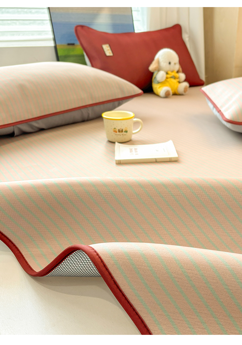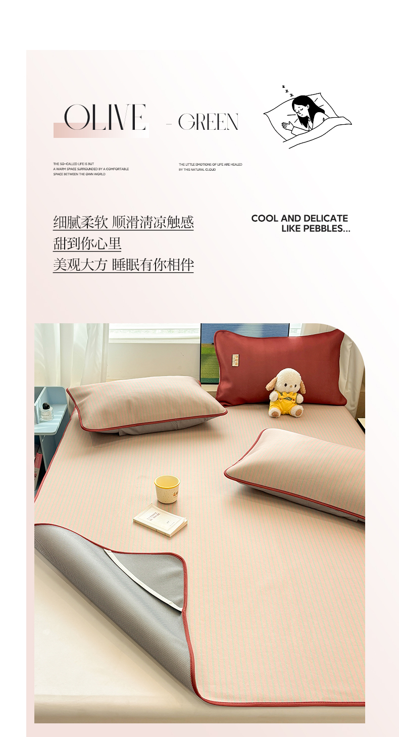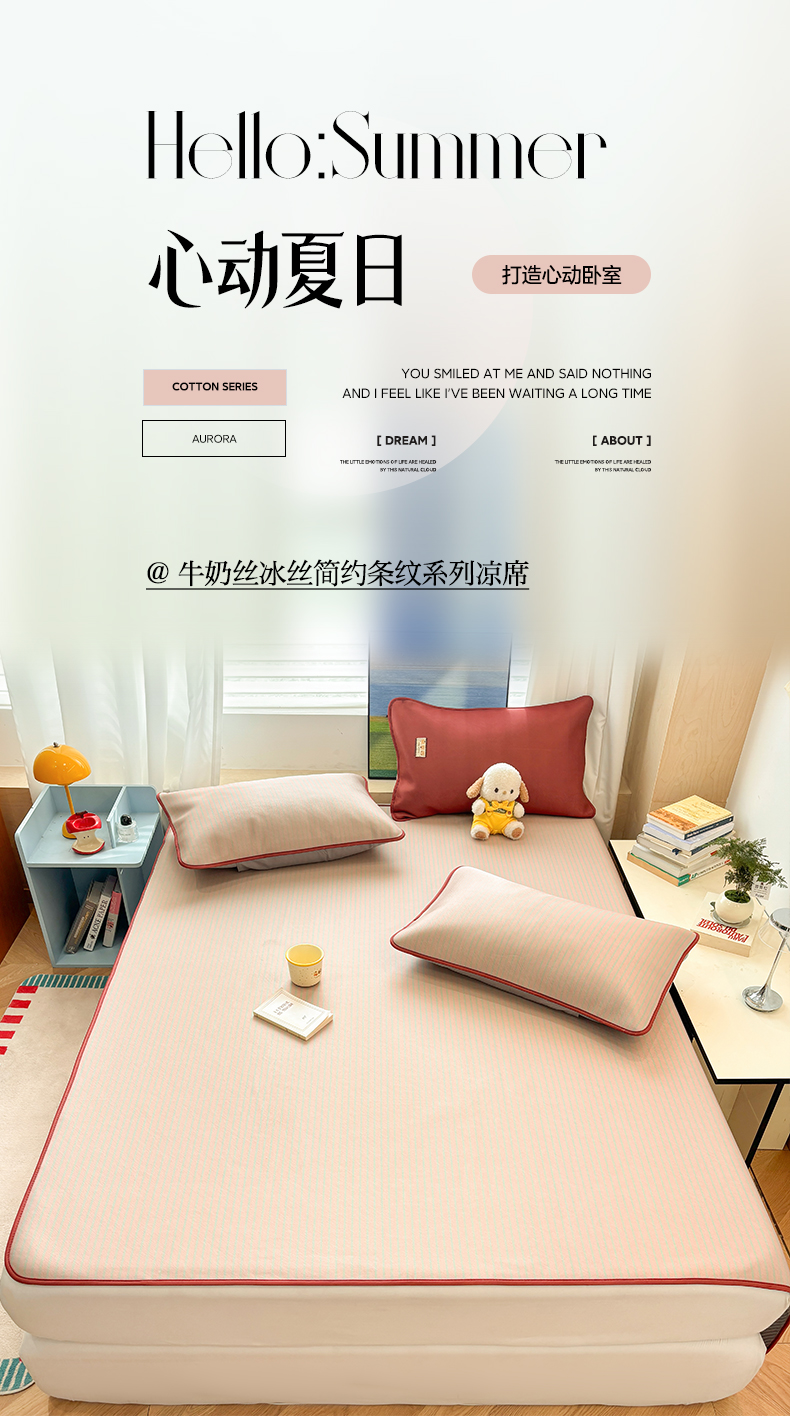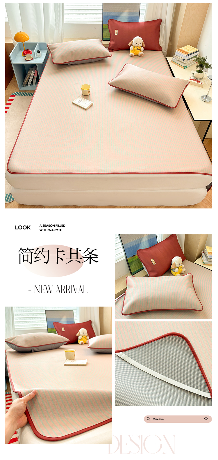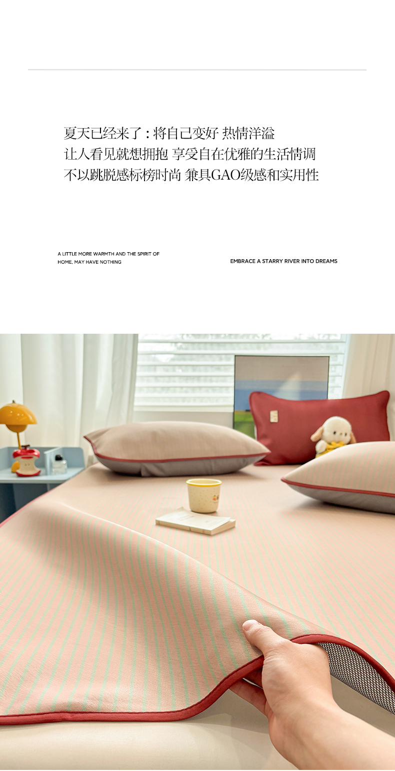 (总)雅居纺家纺 2026新款简约条纹系列凉席牛奶丝三明治底冰丝凉席,简约豆沙条,简约卡其条,简约蓝条,简约亮明黄条,简约绿条