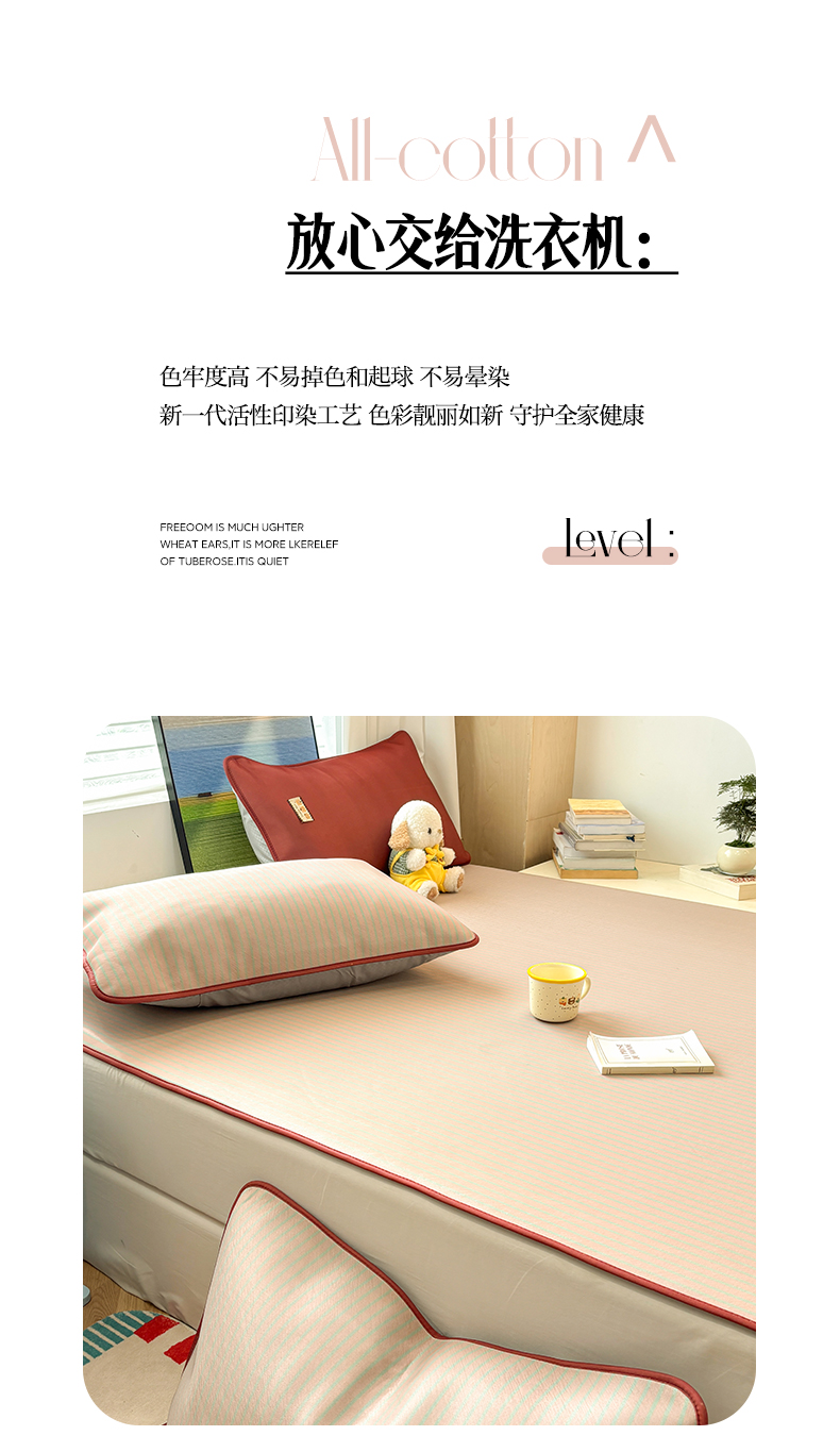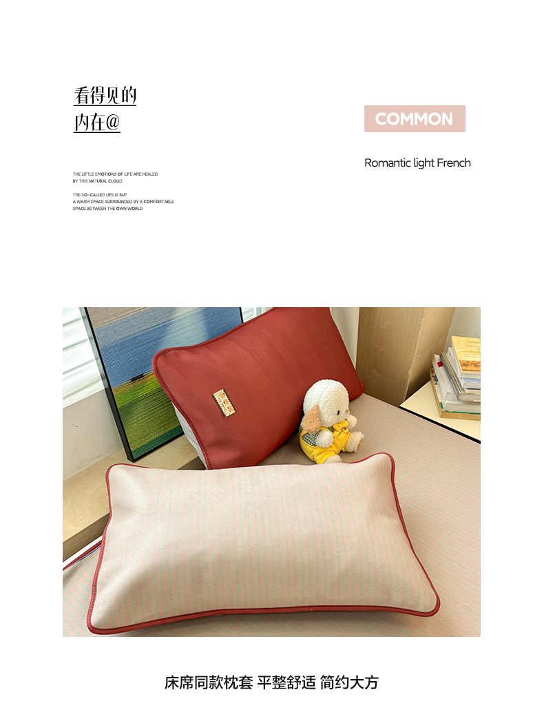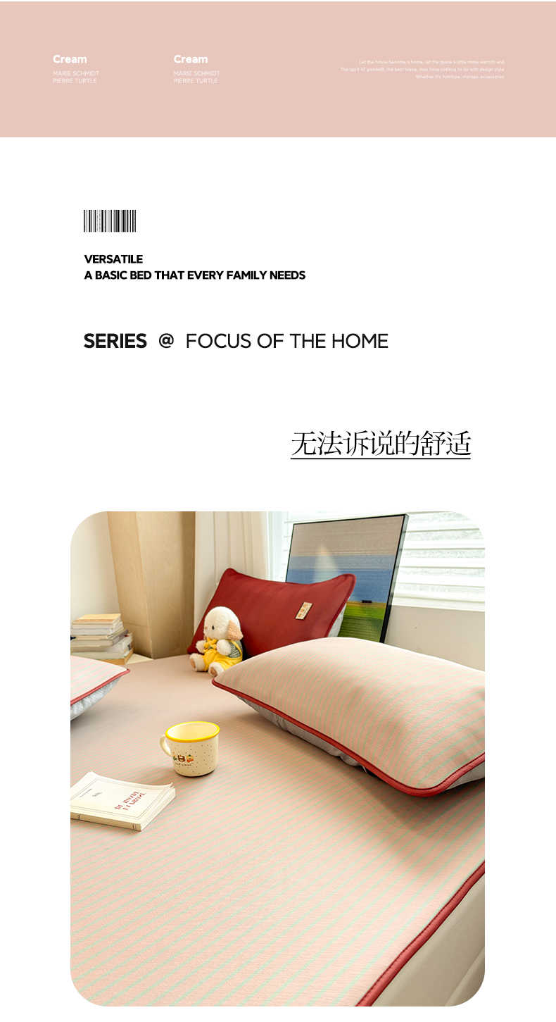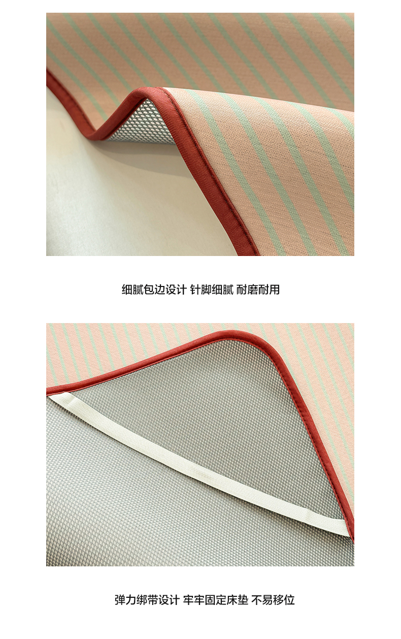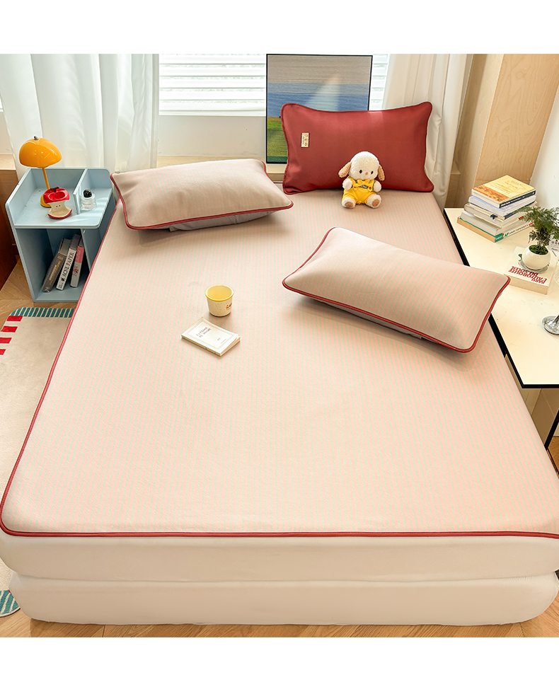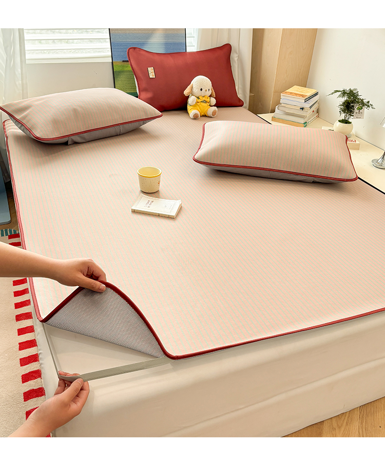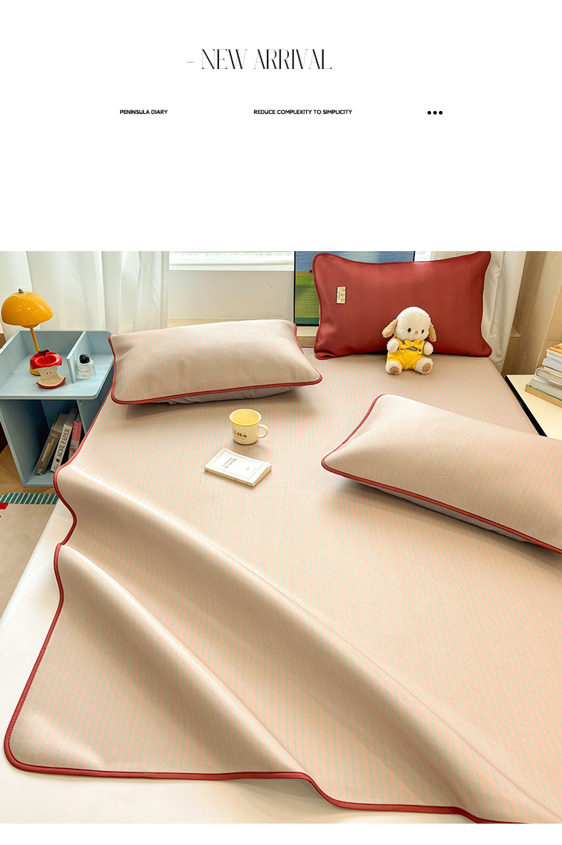 (总)雅居纺家纺 2026新款简约条纹系列凉席牛奶丝三明治底冰丝凉席,简约豆沙条,简约卡其条,简约蓝条,简约亮明黄条,简约绿条
