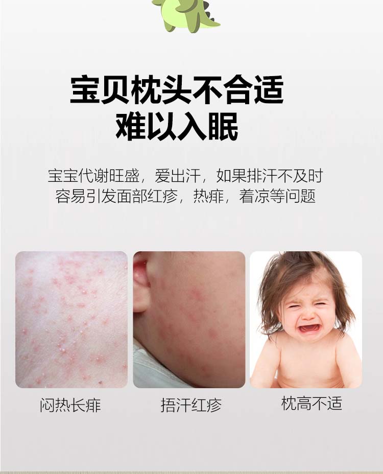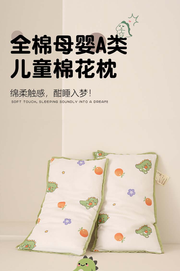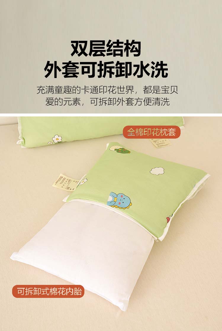 (总)梦叶草 2026新款A类卡通纯棉棉花儿童枕枕头枕芯,白色恐龙,粉色小象,蓝色星空,绿色恐龙,棕色小熊