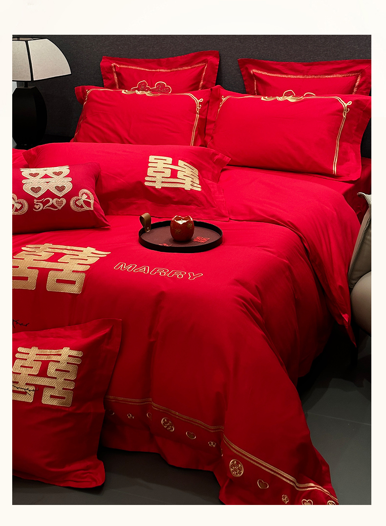 当前位置: 91家纺网 > 商品网购 > 床品套件 > 四件套 > 婚庆四件套 > JUICY 橘滋家纺 2026新款全棉大红刺绣婚庆实惠款四件套多件套 我们结婚了-金