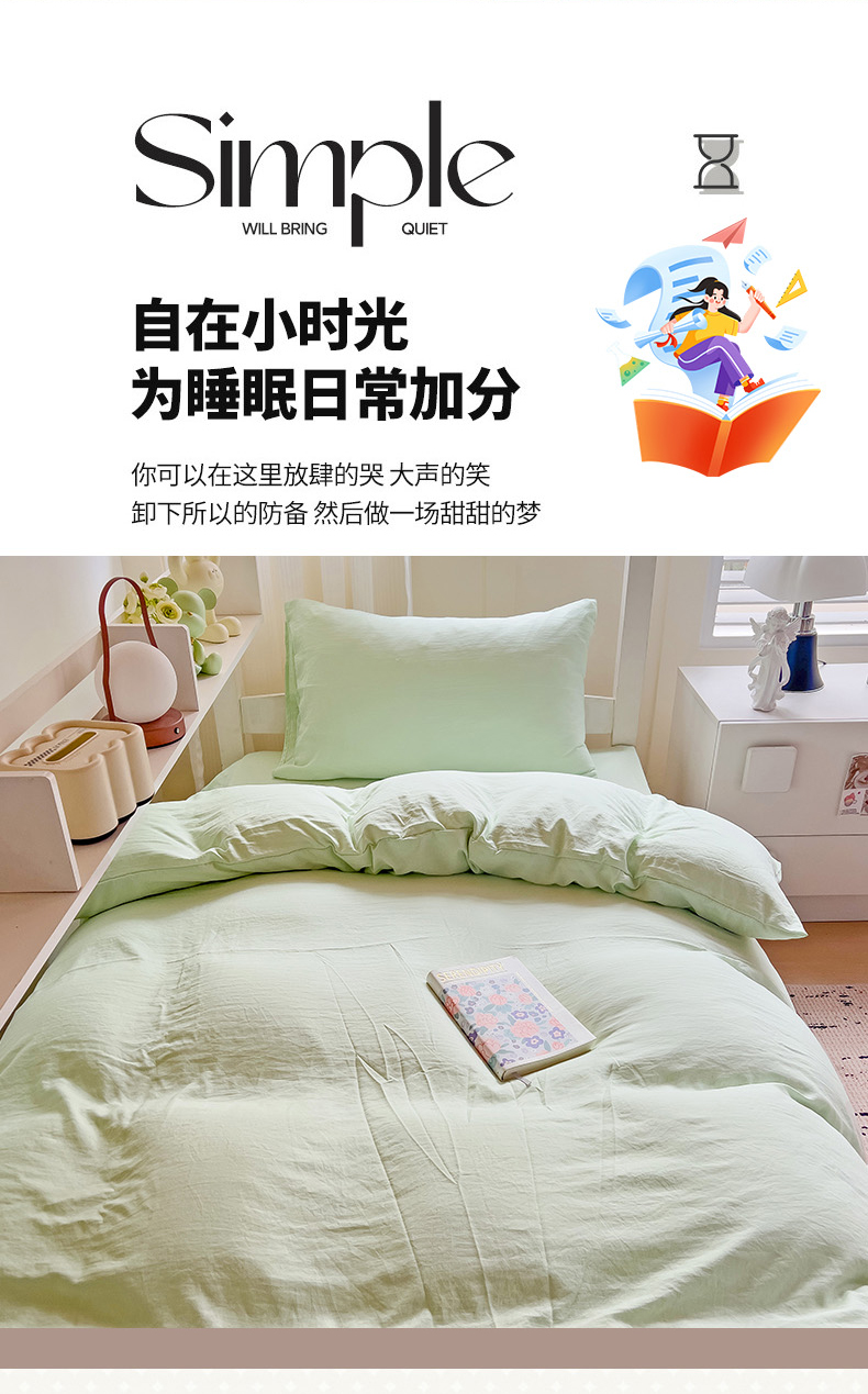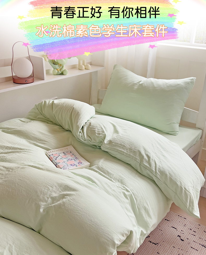 当前位置: 91家纺网 > 商品网购 > 床品套件 > 四件套 > 水洗棉四件套 > 欧妮家纺 2025新款纯色水洗棉四件套学生宿舍床单被套三件套床上用品-【含买家秀】 纯色-浅绿