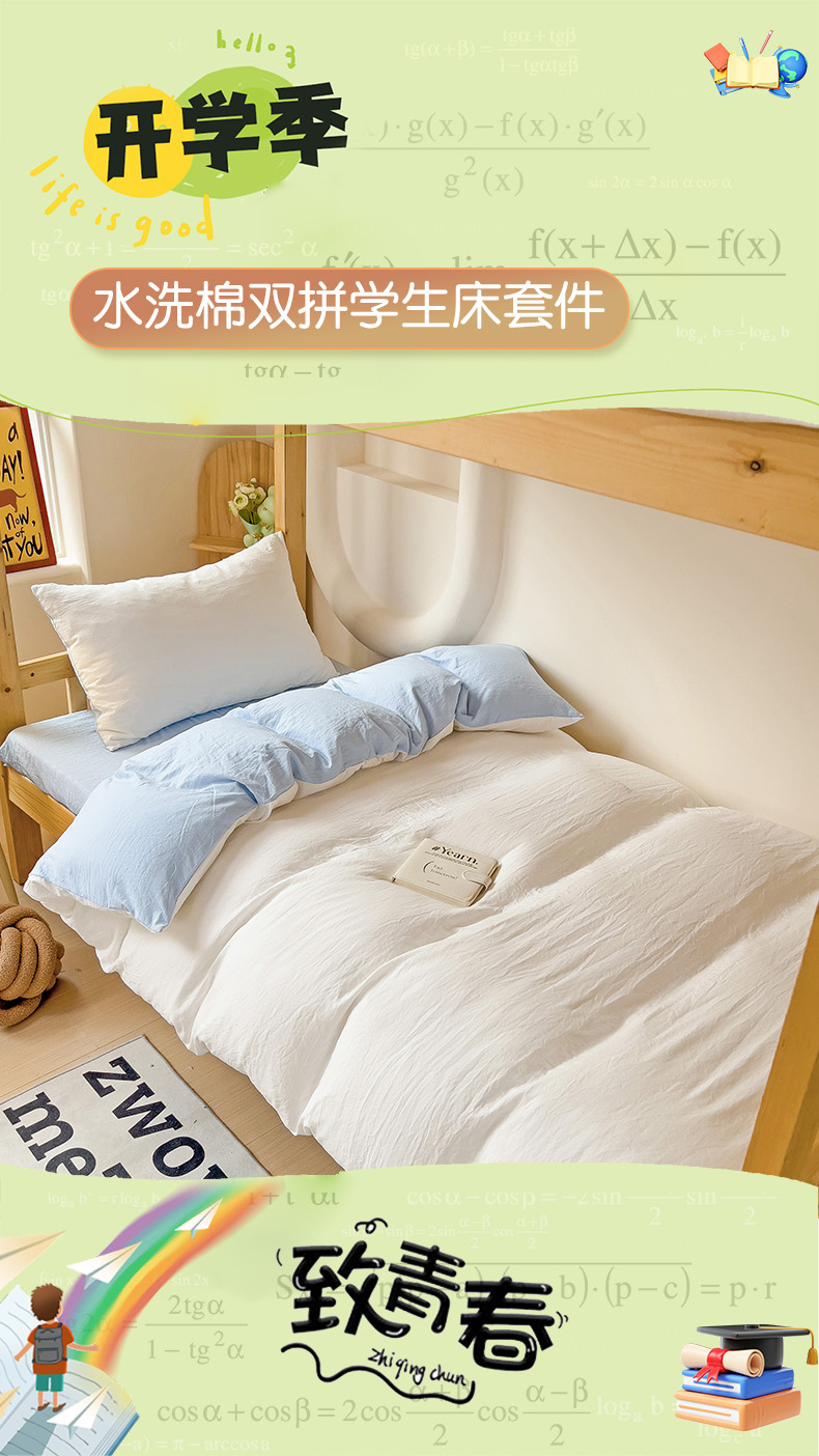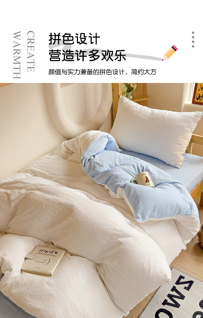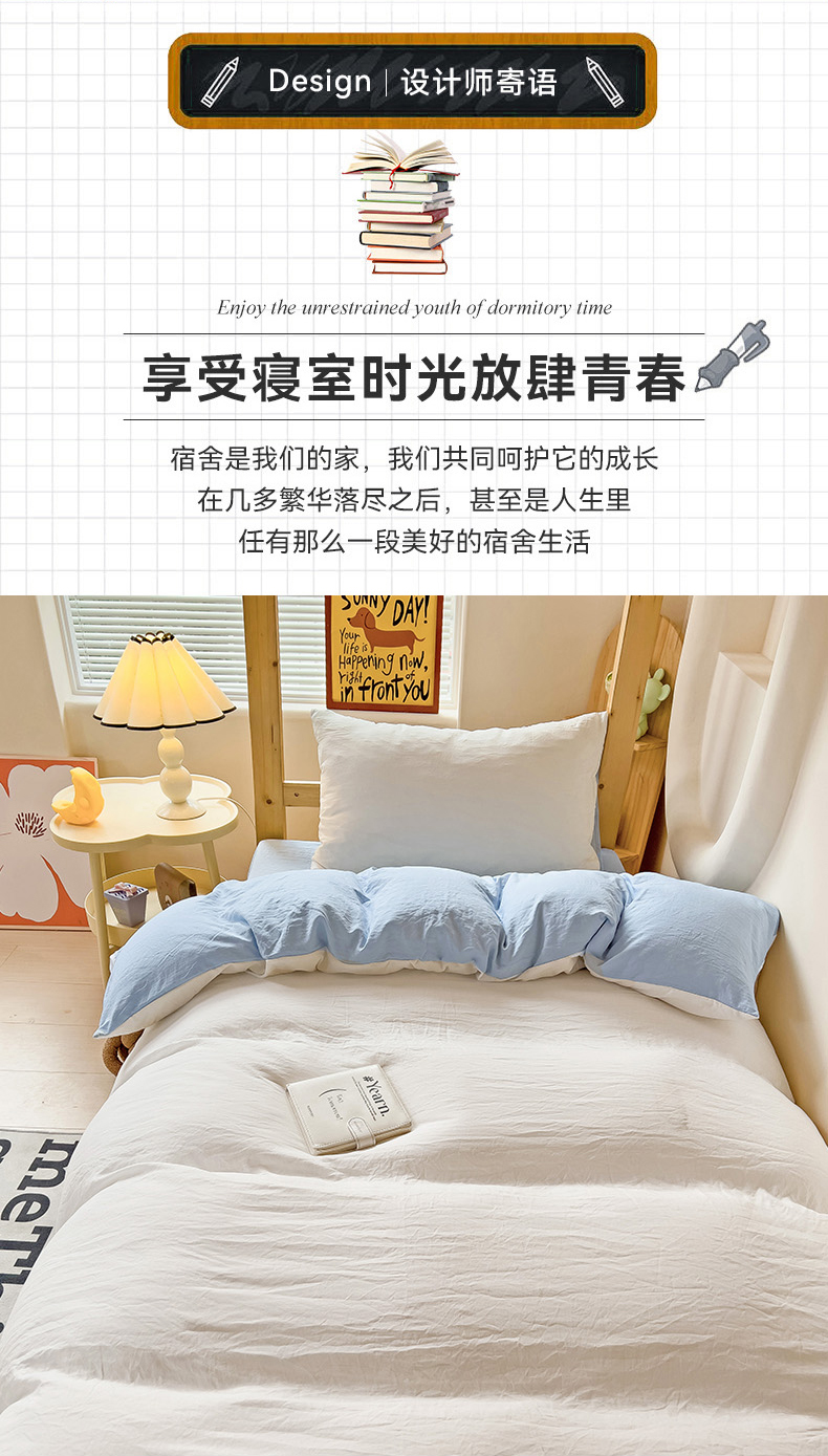 当前位置: 91家纺网 > 商品网购 > 床品套件 > 四件套 > 水洗棉四件套 > 欧妮家纺 2025新款纯色双拼水洗棉四件套学生宿舍上下铺床单被套三件套床上用品-【含买家秀】 双拼系列-白蓝