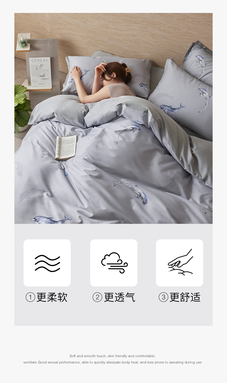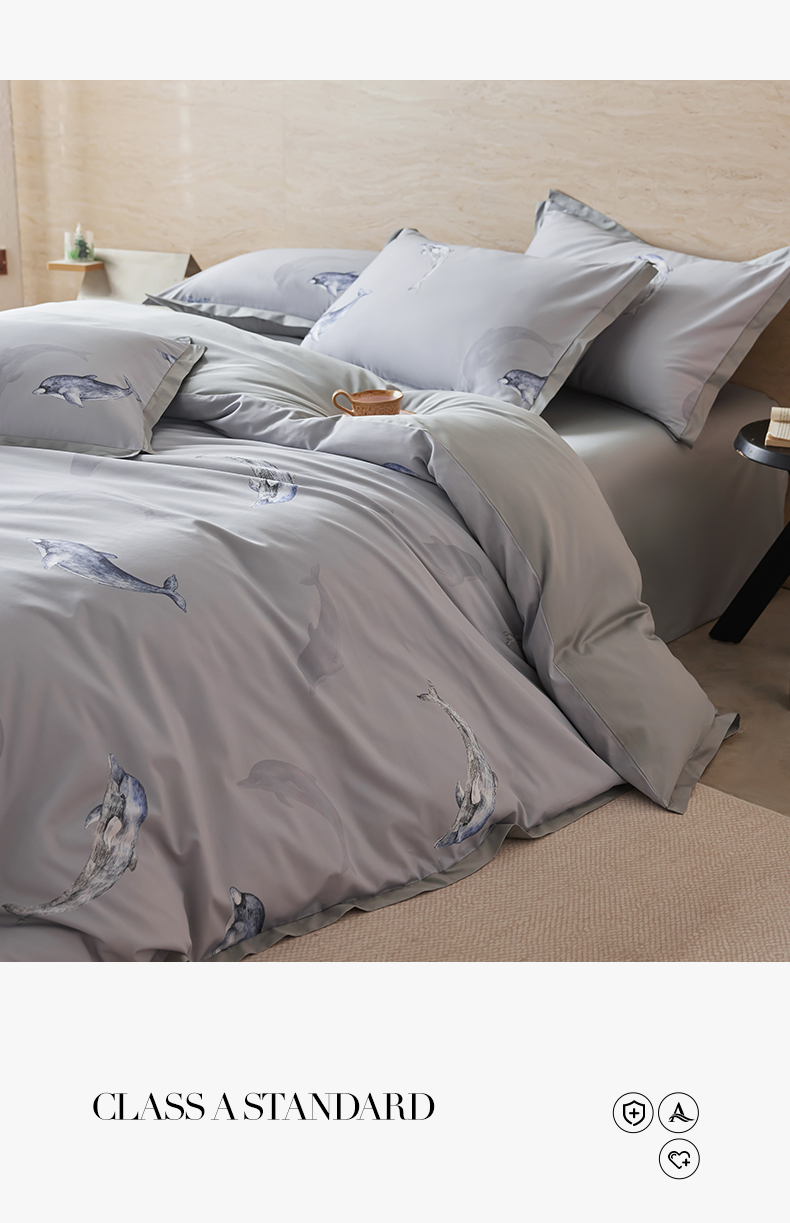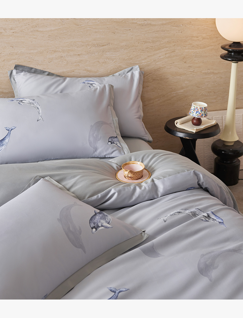 当前位置: 91家纺网 > 商品网购 > 床品套件 > 四件套 > 全棉活性四件套 > 千朵森 2026新款海洋风全棉纯棉50S数码印花拼角四件套 HY海豚浅湾