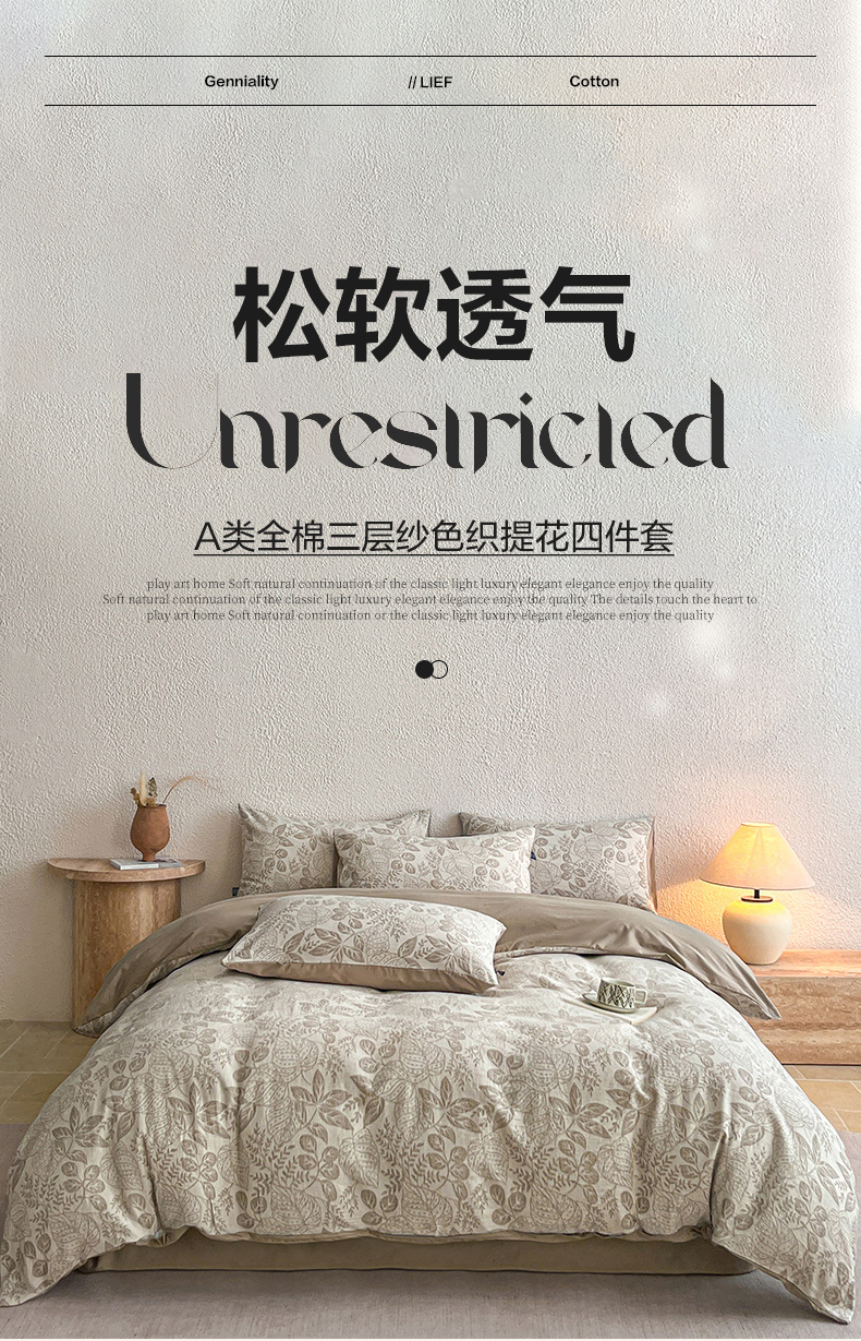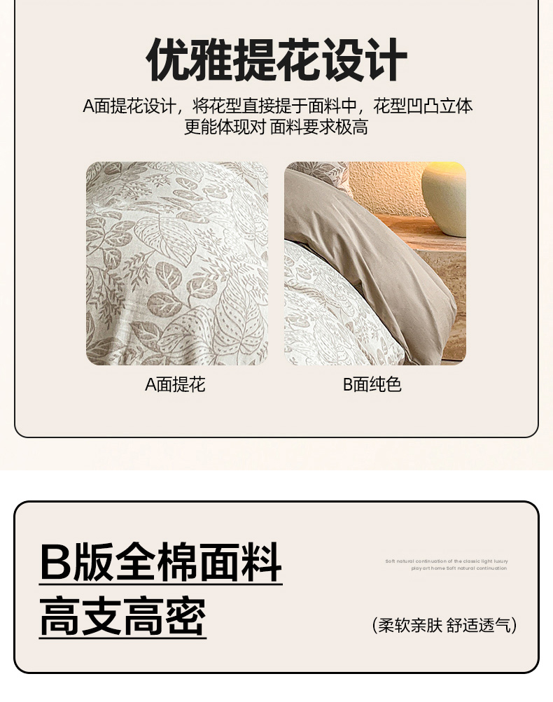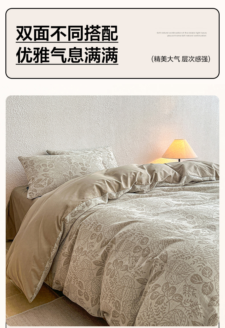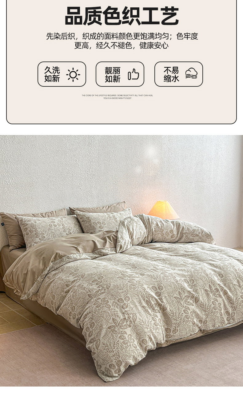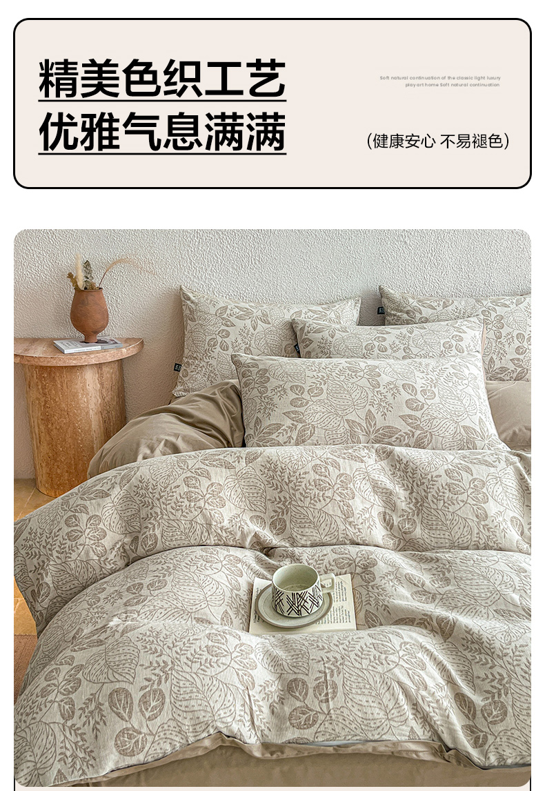 当前位置: 91家纺网 > 商品网购 > 床品套件 > 四件套 > 全棉普通四件套 > 恋人优选 2026新款全棉纯棉三层提花四件套 茎叶时光-咖