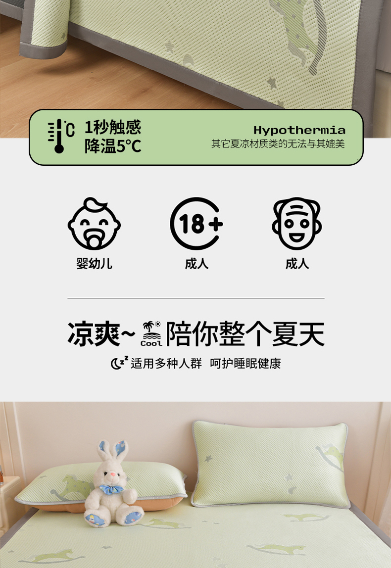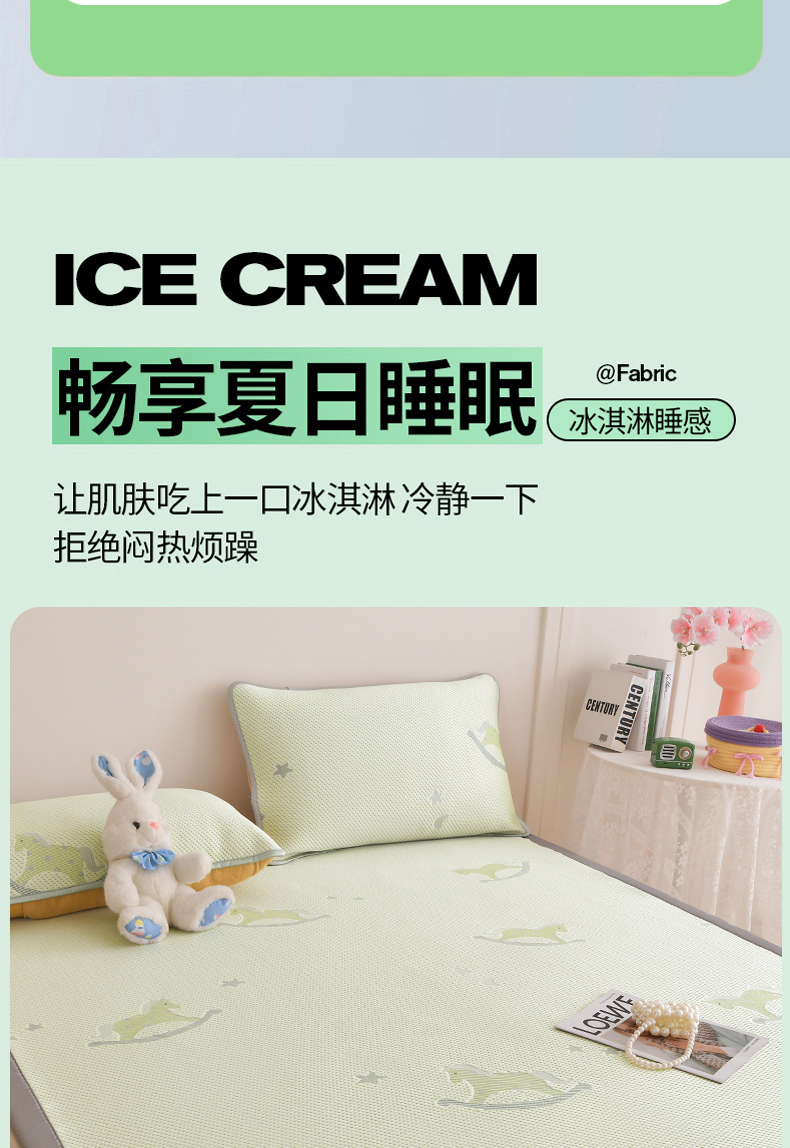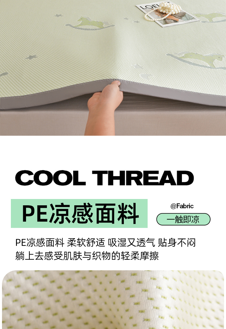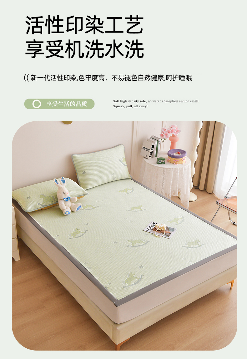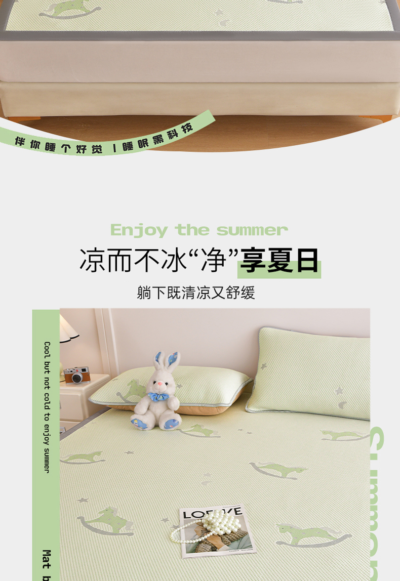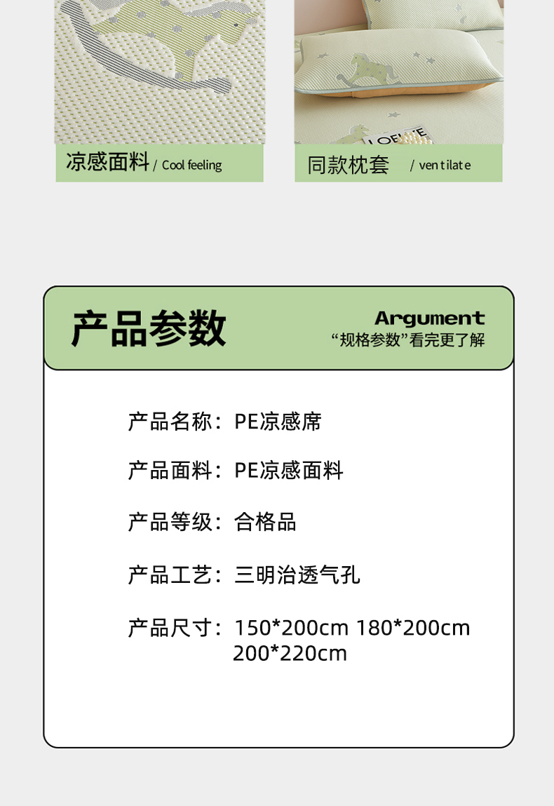 商品名称:金艾草 2026新款PE冰豆豆席凉感凉席单件席子平铺款 凉豆豆凉席-小马绿