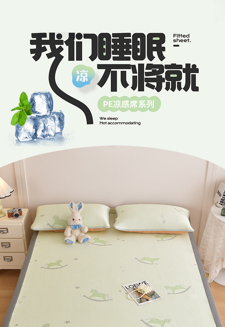 金艾草 2026新款PE冰豆豆席凉感凉席单件席子平铺款 凉豆豆凉席-小马绿