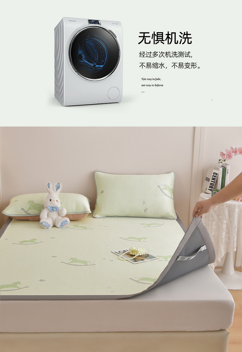 (总)金艾草 2026春夏新款PE凉感床裙款凉席席子空调软席,清新-粉色,清新-灰色,清新-蓝色,清新-绿色