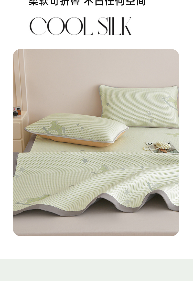 (总)金艾草 2026新款PE高分子凉豆豆小冰皮凉感花边床裙席子凉席三件套,豆豆床裙-粉色,豆豆床裙-灰色,豆豆床裙-浅蓝,豆豆床裙-浅绿