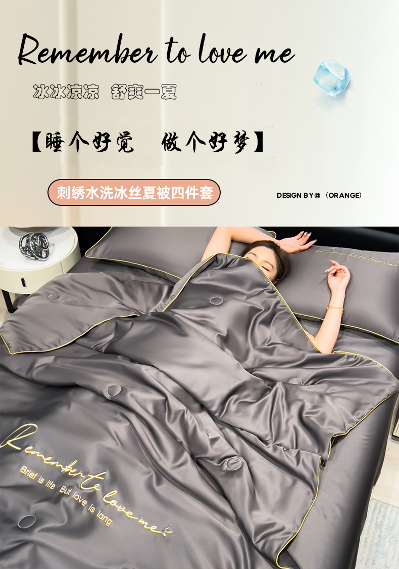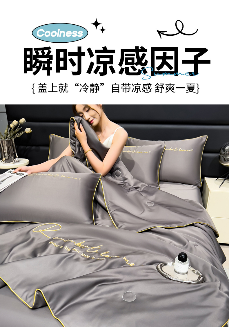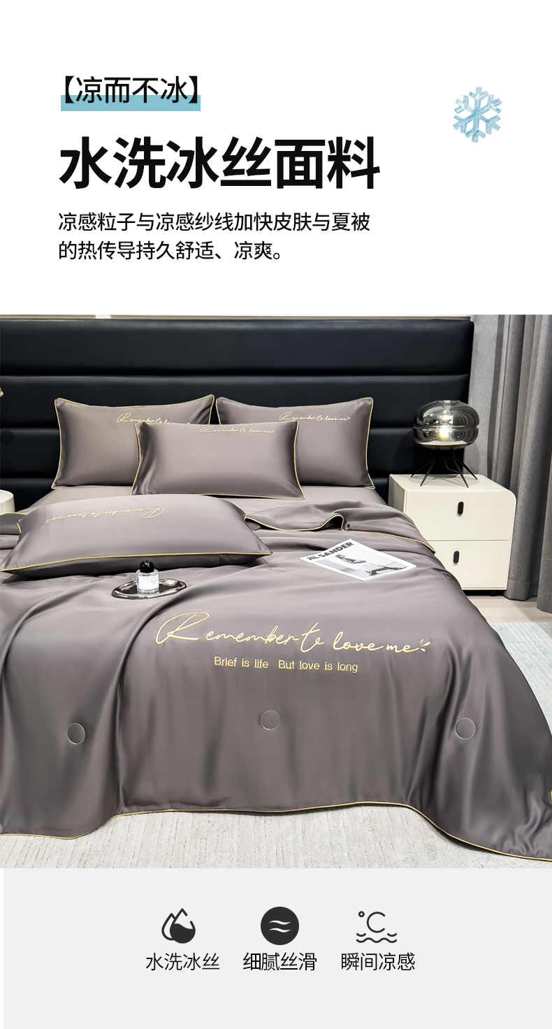 • 91家纺网 家纺一手货源 找家纺 云恋家纺 2026新款轻奢高级感水洗冰丝刺绣夏凉被凉感可裸睡空调被四件套学生薄款被-一生所爱系列 一生所爱-绅士灰