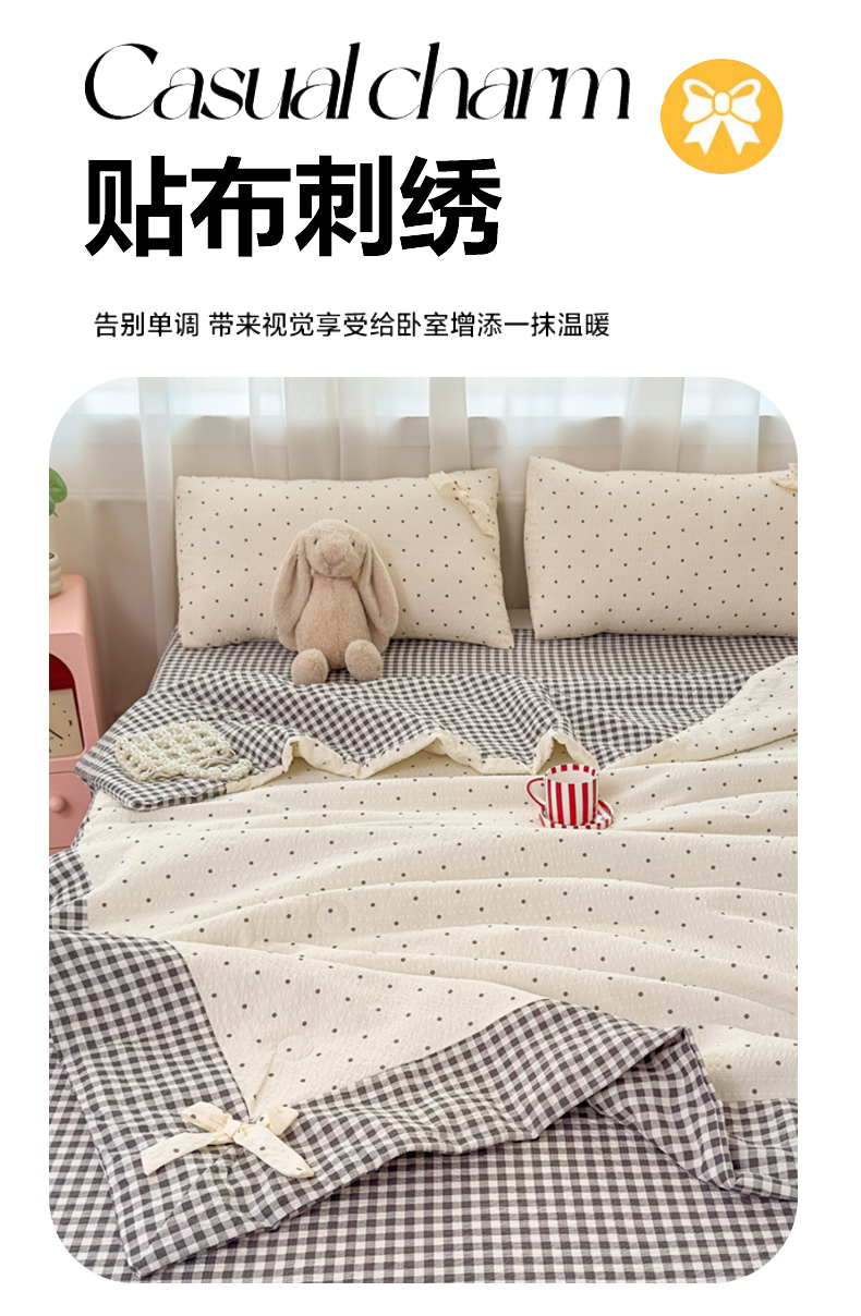 爱彼家纺 2026春夏新款韩式花边泡芙棉床单款夏被夏凉被空调被四件套 奶灰波点