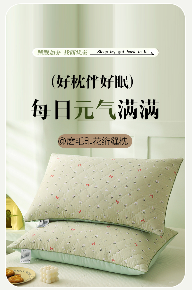当前位置: 91家纺网 > 商品网购 > 枕头/枕芯/保健枕/颈椎枕 > 普通枕芯 > 贤内助家纺 2026磨毛绗缝清新小碎花舒适枕/学生宿舍枕头/家用 花语情怀粉色 48x74cm/只