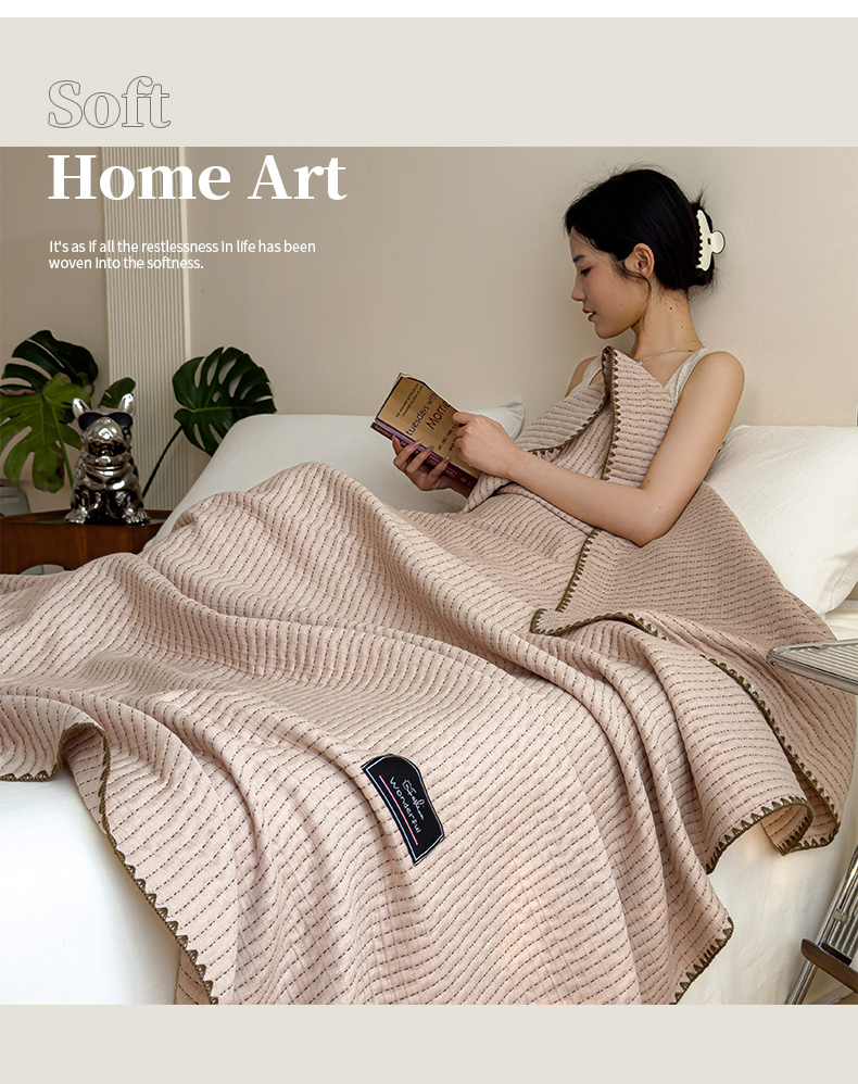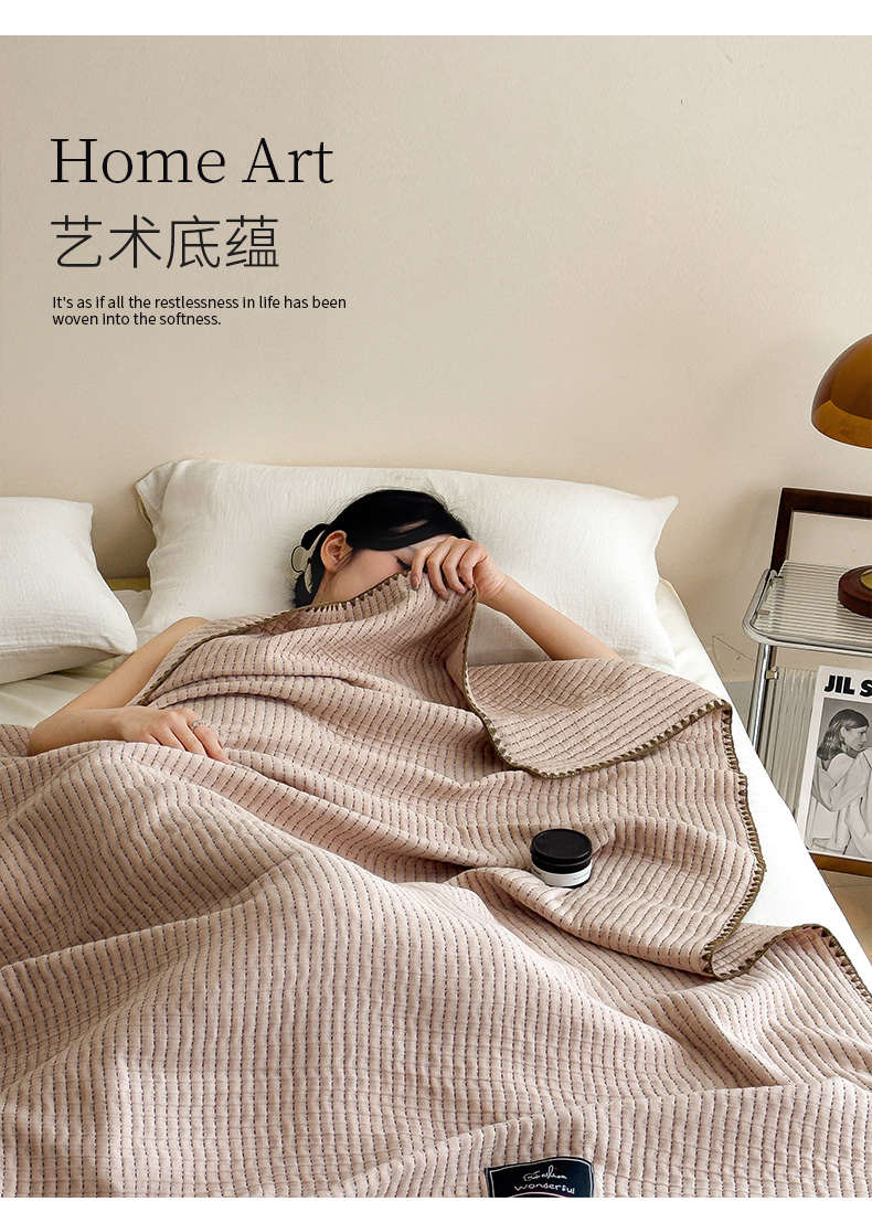 商品名称:云恋家纺 2026新款A类全棉毛巾被全棉学生午睡毯薄款夏被沙发空调被办公室披肩毯 初见-迪卡驼