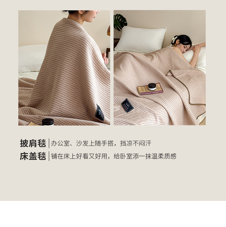 云恋家纺 2026新款A类全棉毛巾被全棉学生午睡毯薄款夏被沙发空调被办公室披肩毯 初见-迪卡驼