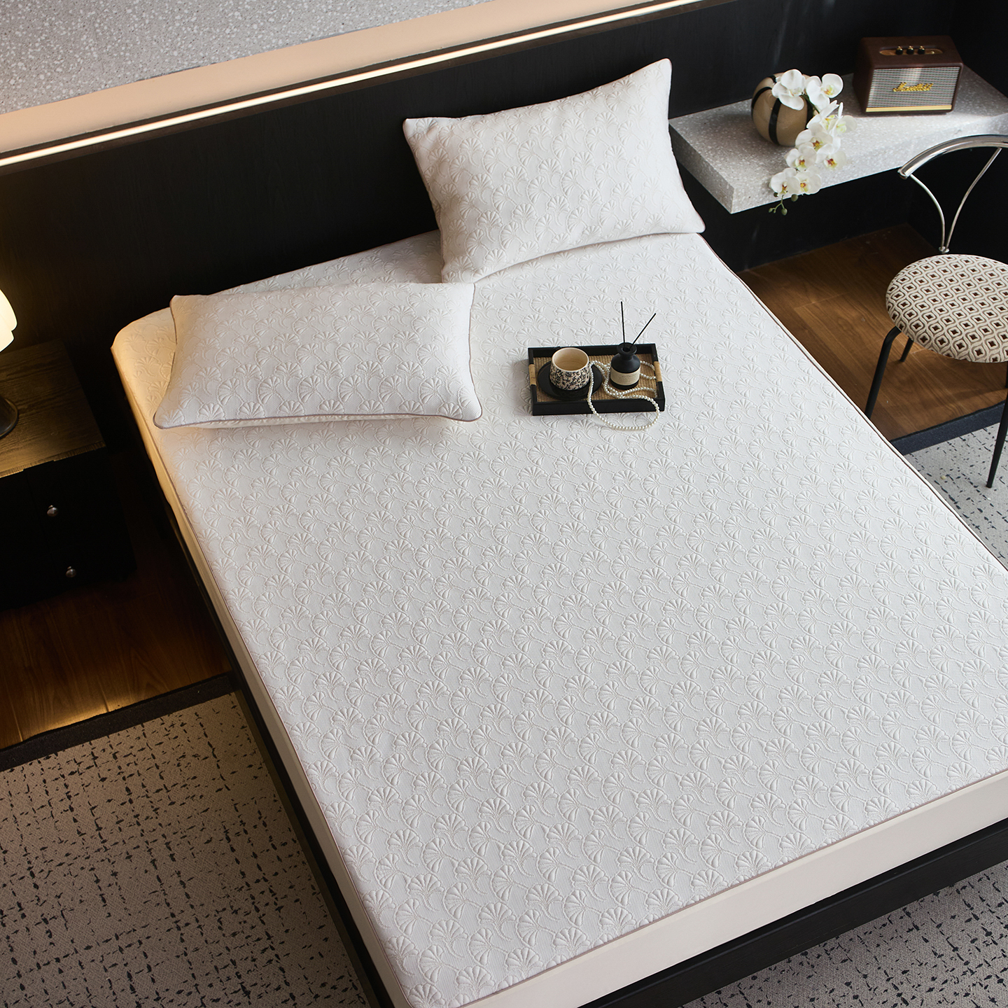 (总)安莱生活 2026新款A类“冰糕”高分子PE550D床笠款(含银丝款)三件套凉席-第一批,菱格,缦纱,斜屿,斜屿-灰,云缦,组合图仅供展示不可下单