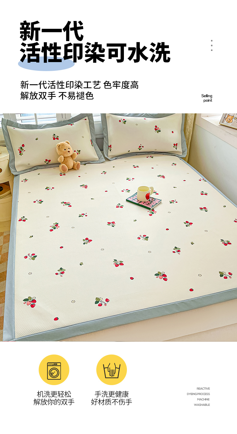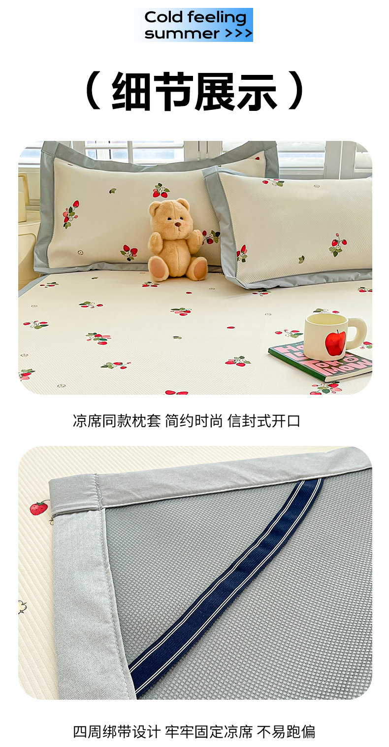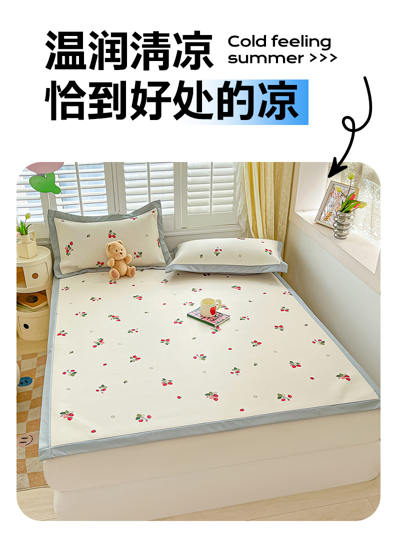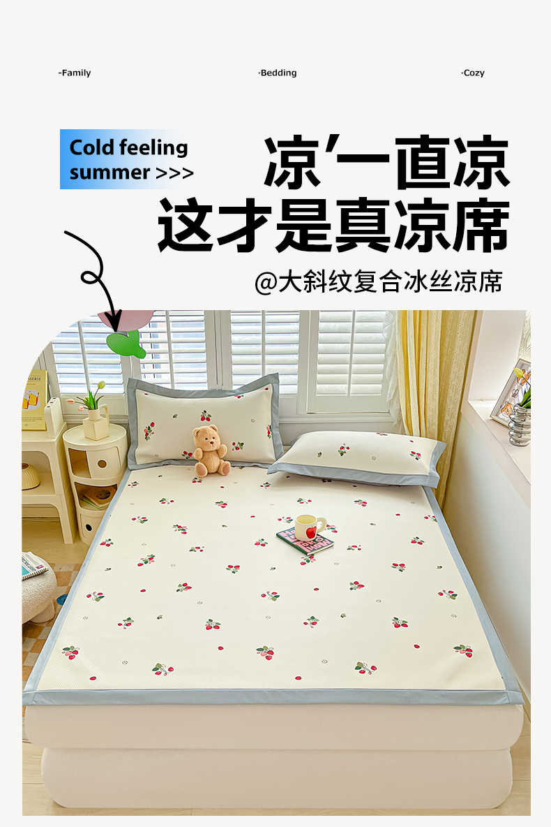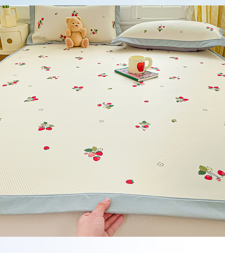 商品名称:女子家纺 2026新款大斜纹复合冰丝凉席-床席款 奶油草莓
