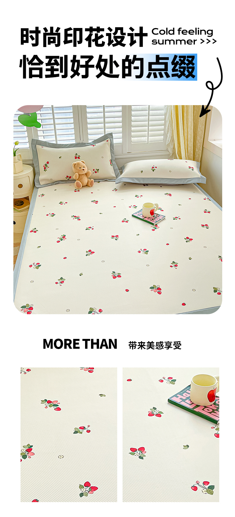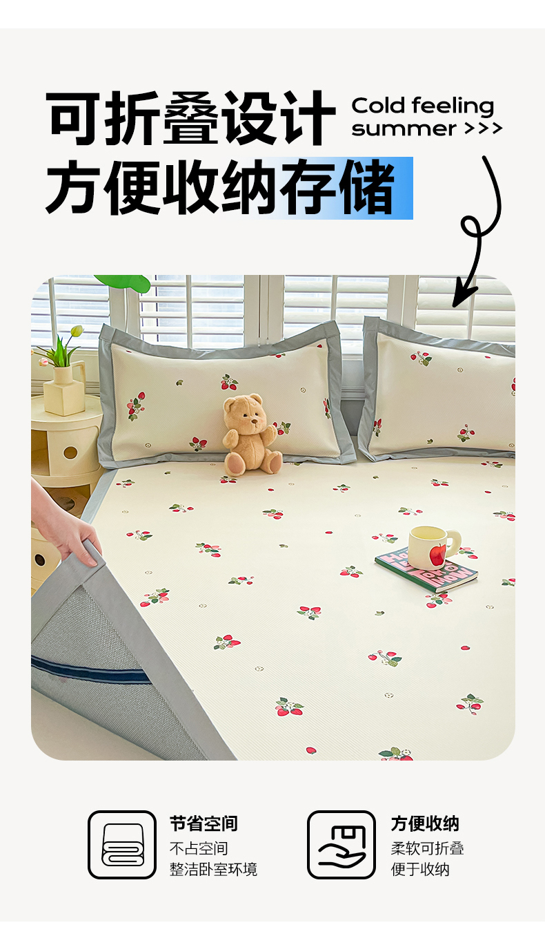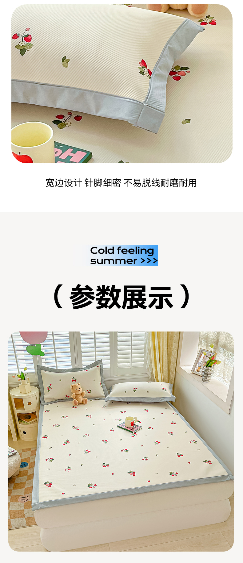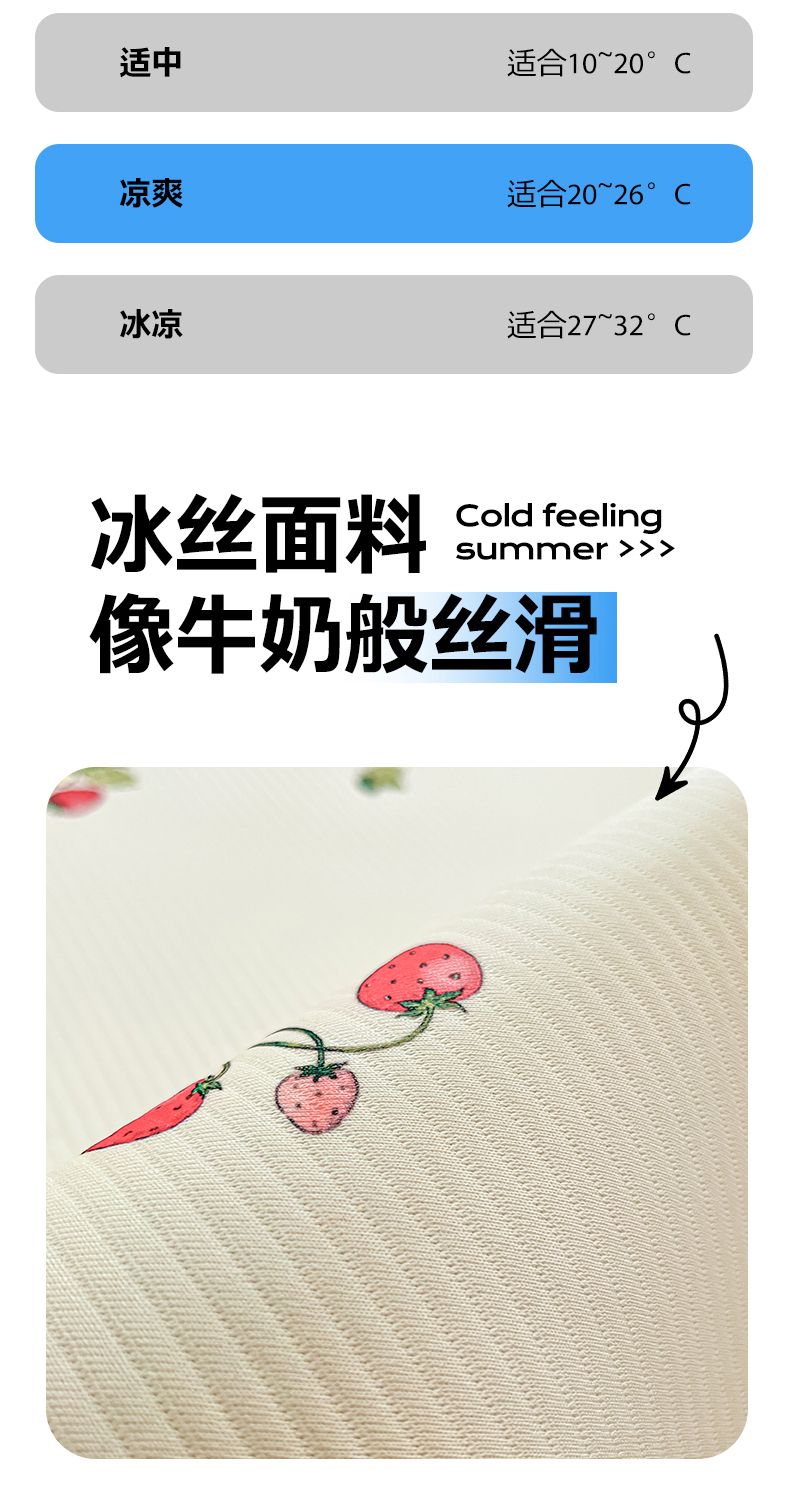 商品名称:女子家纺 2026新款大斜纹复合冰丝凉席-床席款 奶油草莓