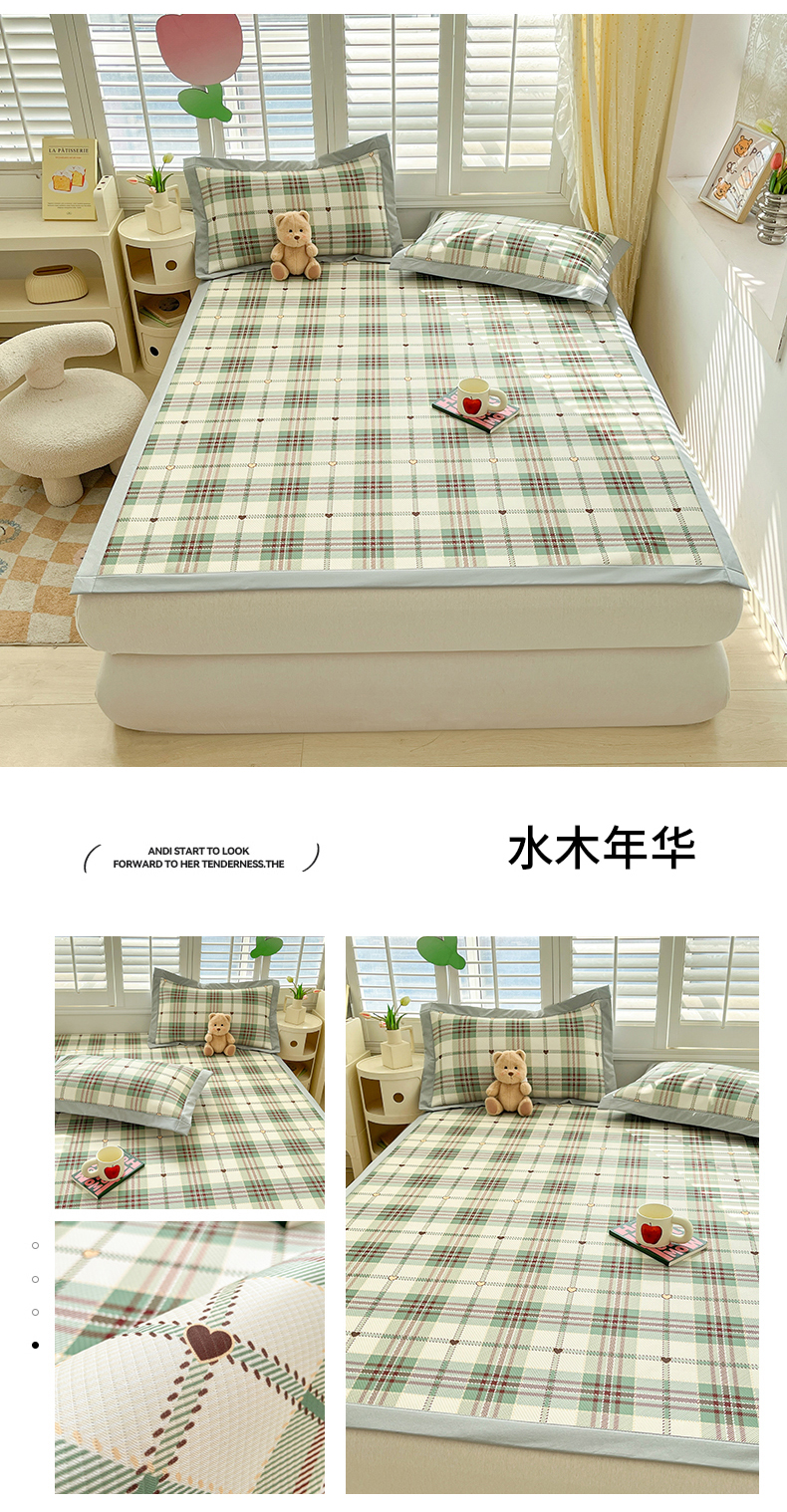 (总)女子家纺 2026新款碳光冰丝席子三件套加厚三明治冰丝软席席子凉席-平铺席,千鸟格-绑带款-海星蓝,千鸟格-绑带款-千禧粉,千鸟格-绑带款-松石绿,千鸟格-绑带款-香槟金,千鸟格-绑带款-银帆灰,组合图(仅供展示不可下单)