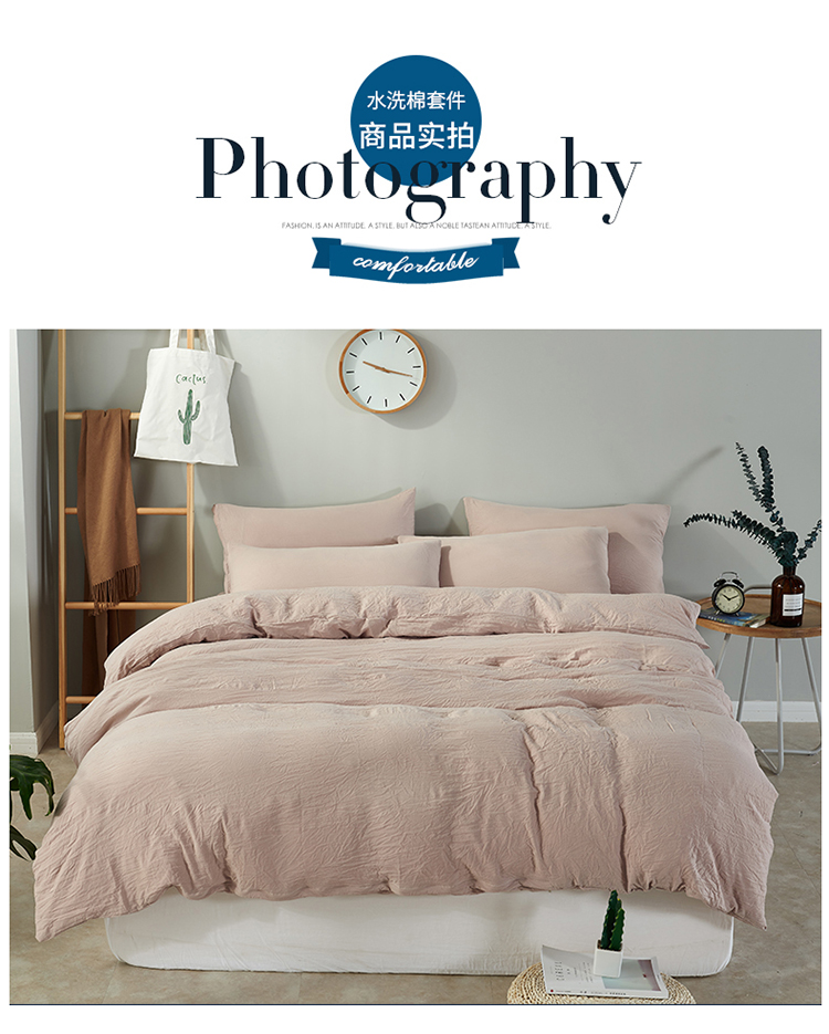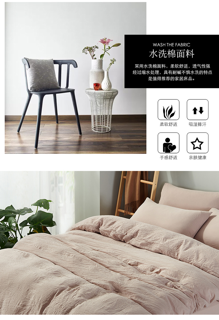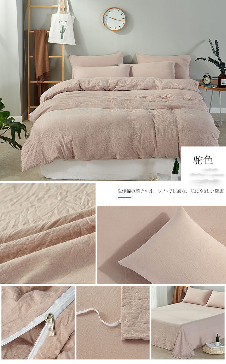 优宜家纺织 水洗棉四件套多规格(纯色系列)床单款纯色-驼色
