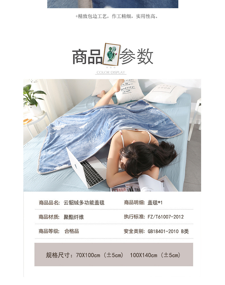 当前位置: 91家纺网 > 商品网购 > 毛毯休闲毯绒毯 > 毛毯 > 羋多家纺 单层双面加厚多功能毯童毯披肩毯 时尚天空