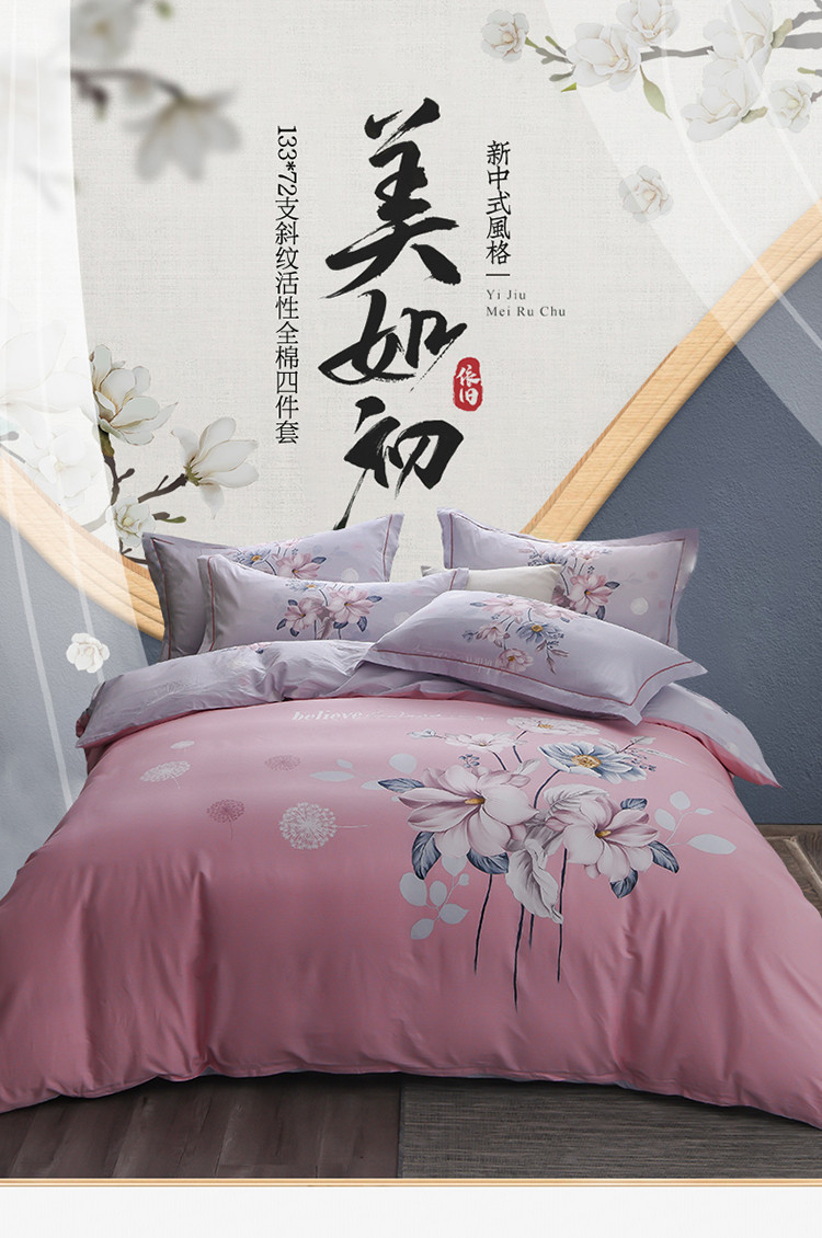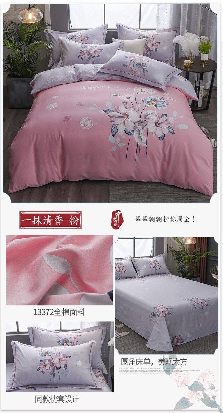 商品名称:雲归梦 2020新款13372全棉大版四件套 一抹清香-粉