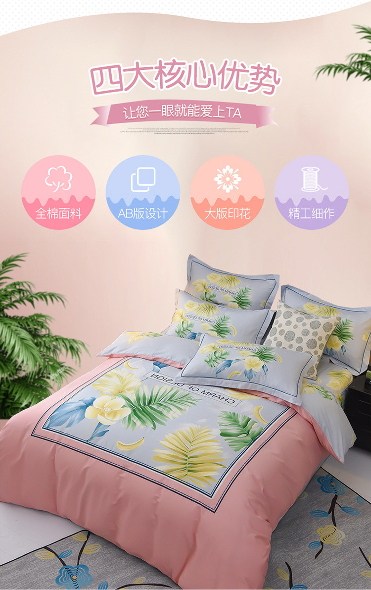 商品名称:雲归梦 2020新款13372全棉大版四件套 叶语